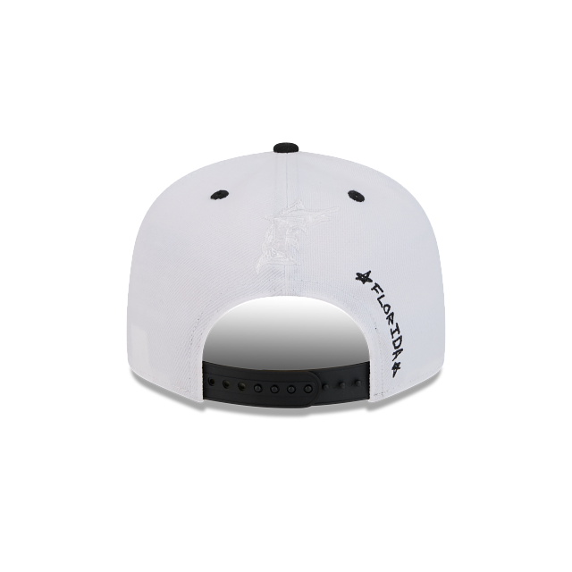 Esta gorra plana New Era 9FIFTY de Florida Marlins de la colección MLB Official Doodles presenta un diseño con el logotipo de los Marlins con un detalle de estrellas bordado en los paneles frontales, un parche conmemorativo del lado derecho, el logo del equipo junto el nombre de la ciudad al reverso y el flag de New Era bordado del lado izquierdo. Apoya a tu equipo y cómprala ya.