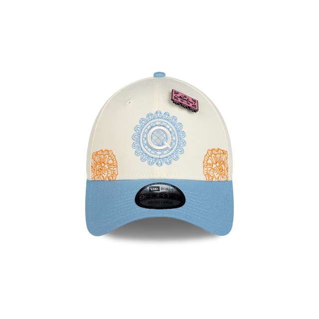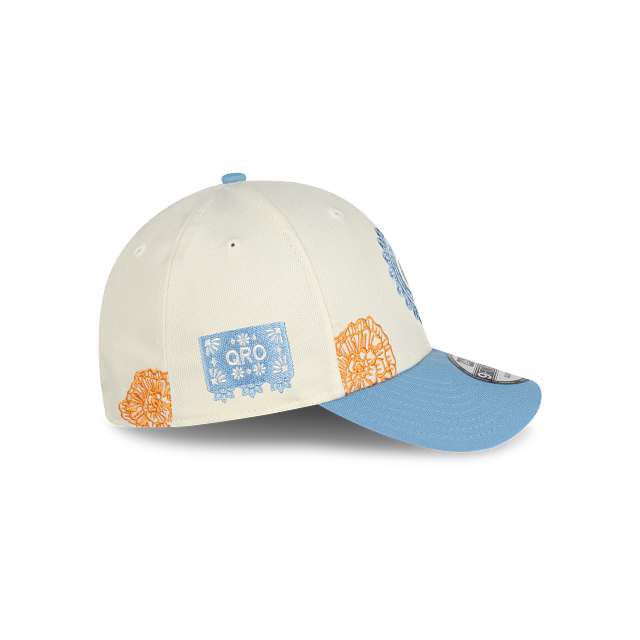 Esta gorra curva New Era 9FORTY de Gallos Blancos de Querétaro de la colección Día de Muertos presenta un diseño inspirado en la artesanía del papel picado con el logotipo del Querétaro bordado en los paneles frontales, detalles de flores de cempasúchil en la corona, el nombre del equipo del lado derecho un pin en forma de papel picado y el flag de New Era bordado del lado izquierdo. Cómprala ya.