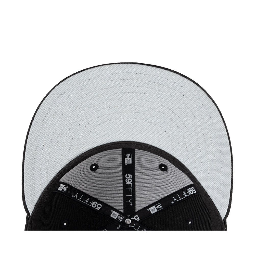 Esta gorra plana New Era 59FIFTY de Gera MX presenta el logotipo de Gera MX bordado en color blanco en los paneles frontales, el logo de su sello discográfico Rich Vagos al reverso y el flag de New Era bordado del lado izquierdo. No te pierdas este artículo de colección y cómprala ya.