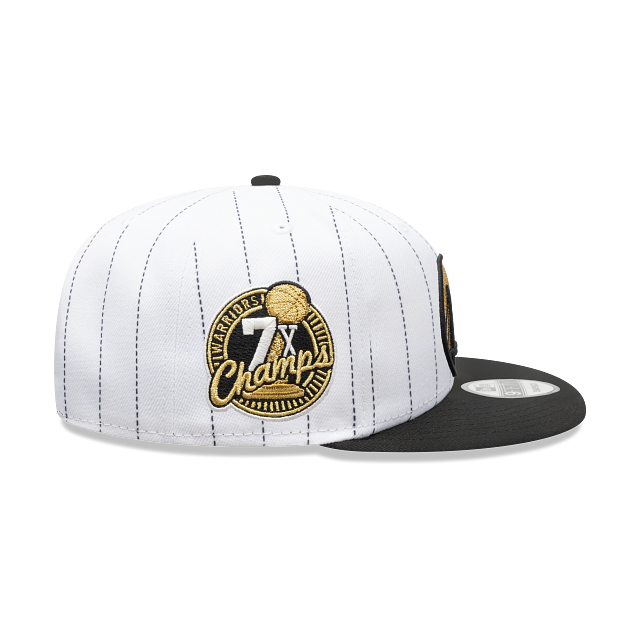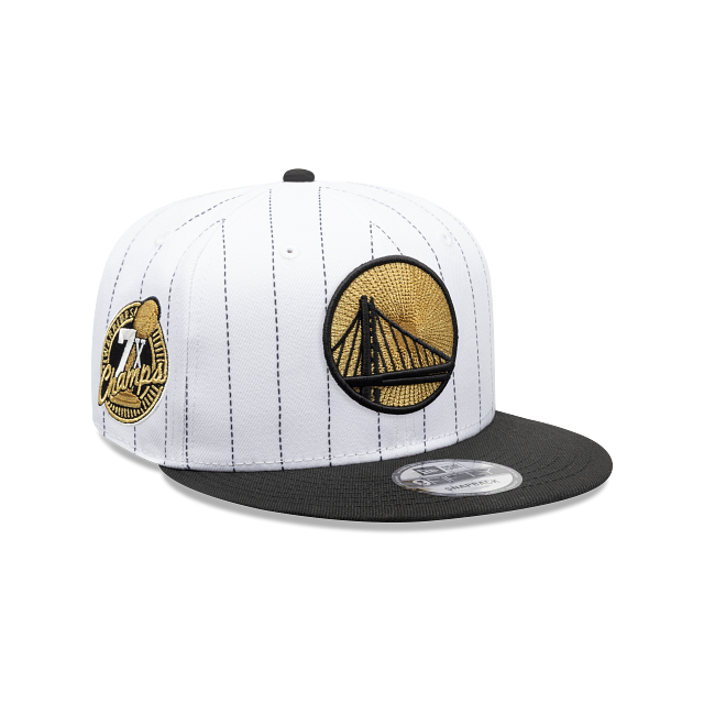 Esta gorra plana New Era 9FIFTY de Golden State Warriors de la colección NBA Pinstripe Black And Gold presenta un diseño a rayas con el logotipo de los Warriors bordado en los paneles frontales, un parche con los títulos del equipo del lado derecho, el logo de la NBA al reverso y el flag de New Era bordado del lado izquierdo. Cómprala ya.