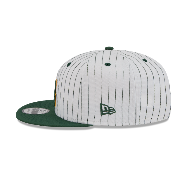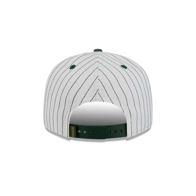 Esta gorra plana New Era 9FIFTY de Green Bay Packers de la colección NFL Deceptor presenta un diseño pinstripe con las iniciales de la ciudad de los Packers bordadas en los paneles frontales, el logo del equipo del lado derecho y el flag de New Era bordado del lado izquierdo. Cómprala ya.