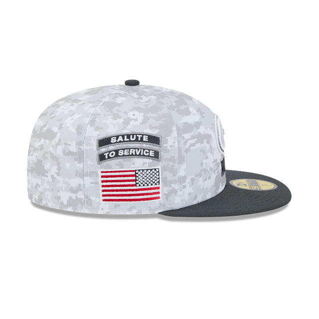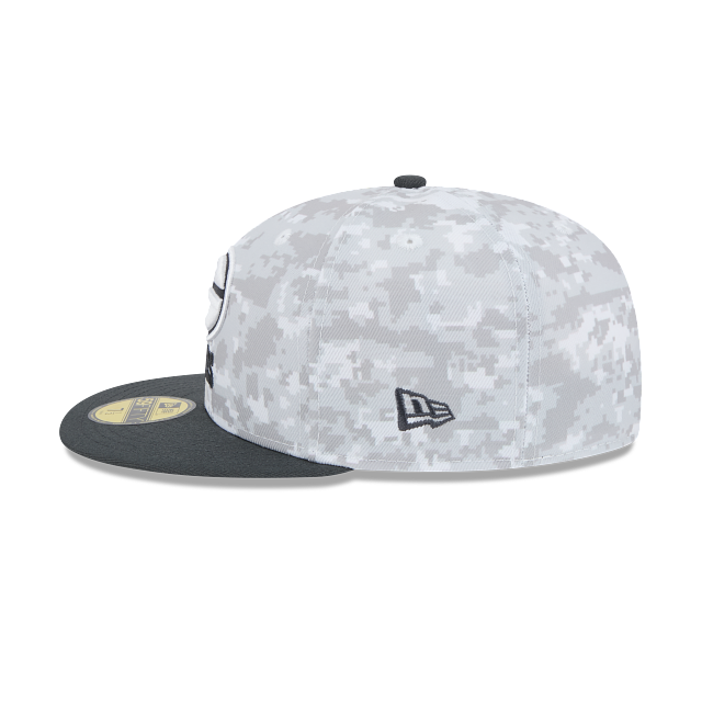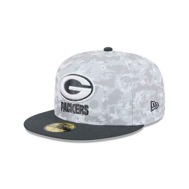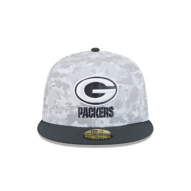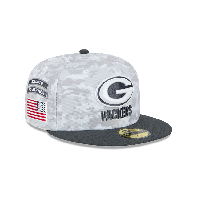 Esta gorra plana New Era 59FIFTY de Green Bay Packers de la colección NFL Salute to Service 2024 presenta un diseño de camuflaje con el logotipo de los Packers bordado en los paneles frontales, la bandera de Estados Unidos del lado derecho, el logo de la NFL al reverso y el flag de New Era bordado del lado izquierdo. Apoya a tu equipo y cómprala ya.