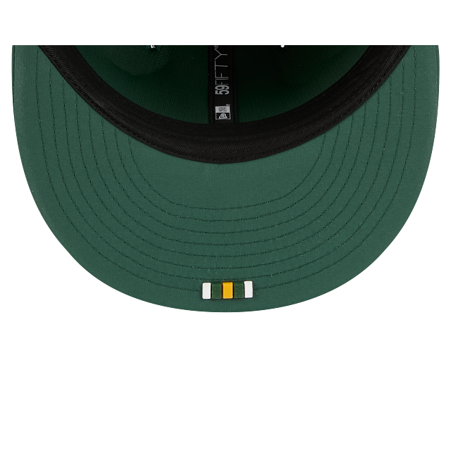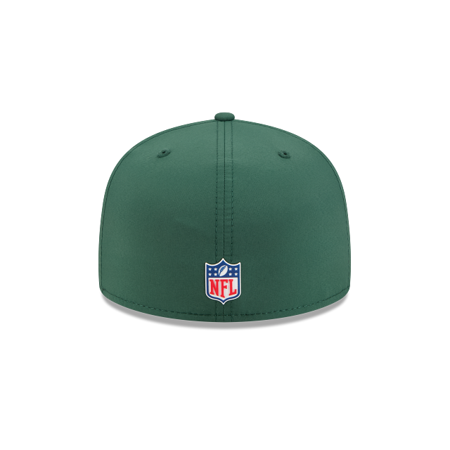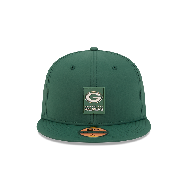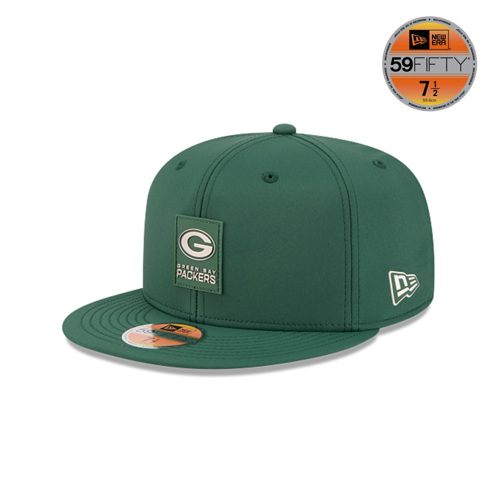 Esta gorra plana New Era 59FIFTY de Green Bay Packers de la colección NFL Sideline Hot Weather 2025 incorpora tecnología HOT que mejora el rendimiento y la comodidad: COOLERA con banda interior que absorbe la humedad y secado rápido para uso durante todo el día, DRYERA con tela repelente al agua y COMFORT con material ligero para una sensación suave y ajuste cómodo.