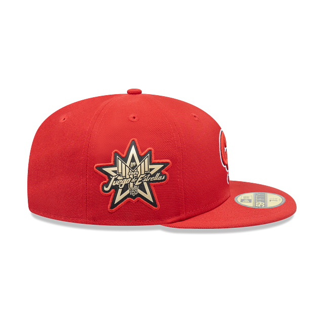 Esta gorra plana New Era 59FIFTY de Guerreros de Oaxaca de la colección LMB Juego de Estrellas 2025 presenta el logotipo de los Guerreros bordado en los paneles frontales, un parche del Juego de Estrellas del lado derecho, el logo de la LMB 100 Aniversario al reverso y el flag de New Era bordado del lado izquierdo. Cómprala ya.