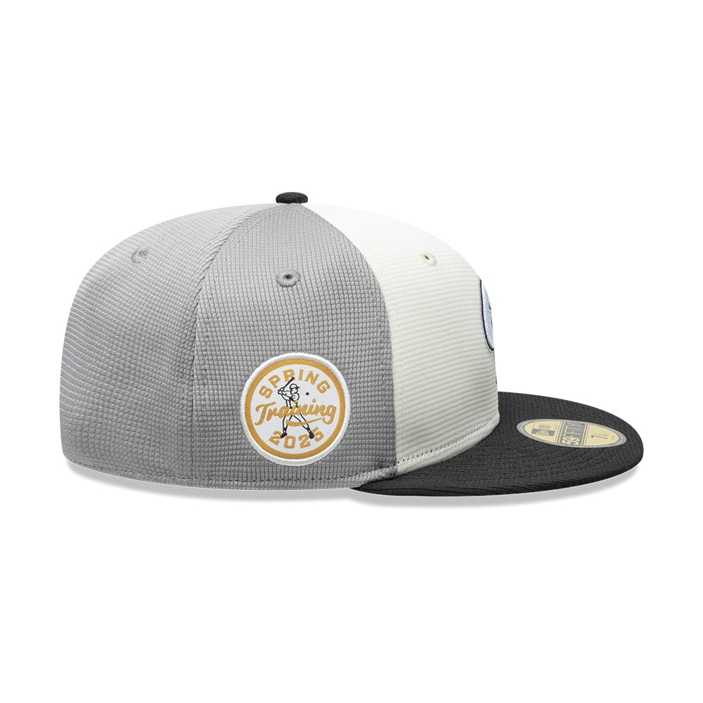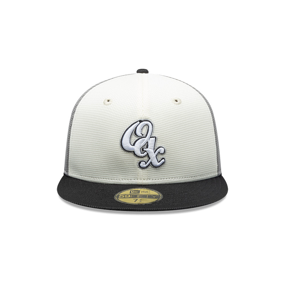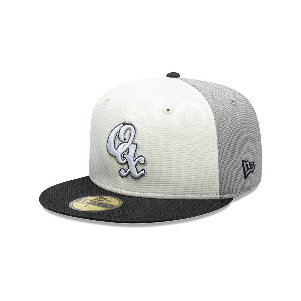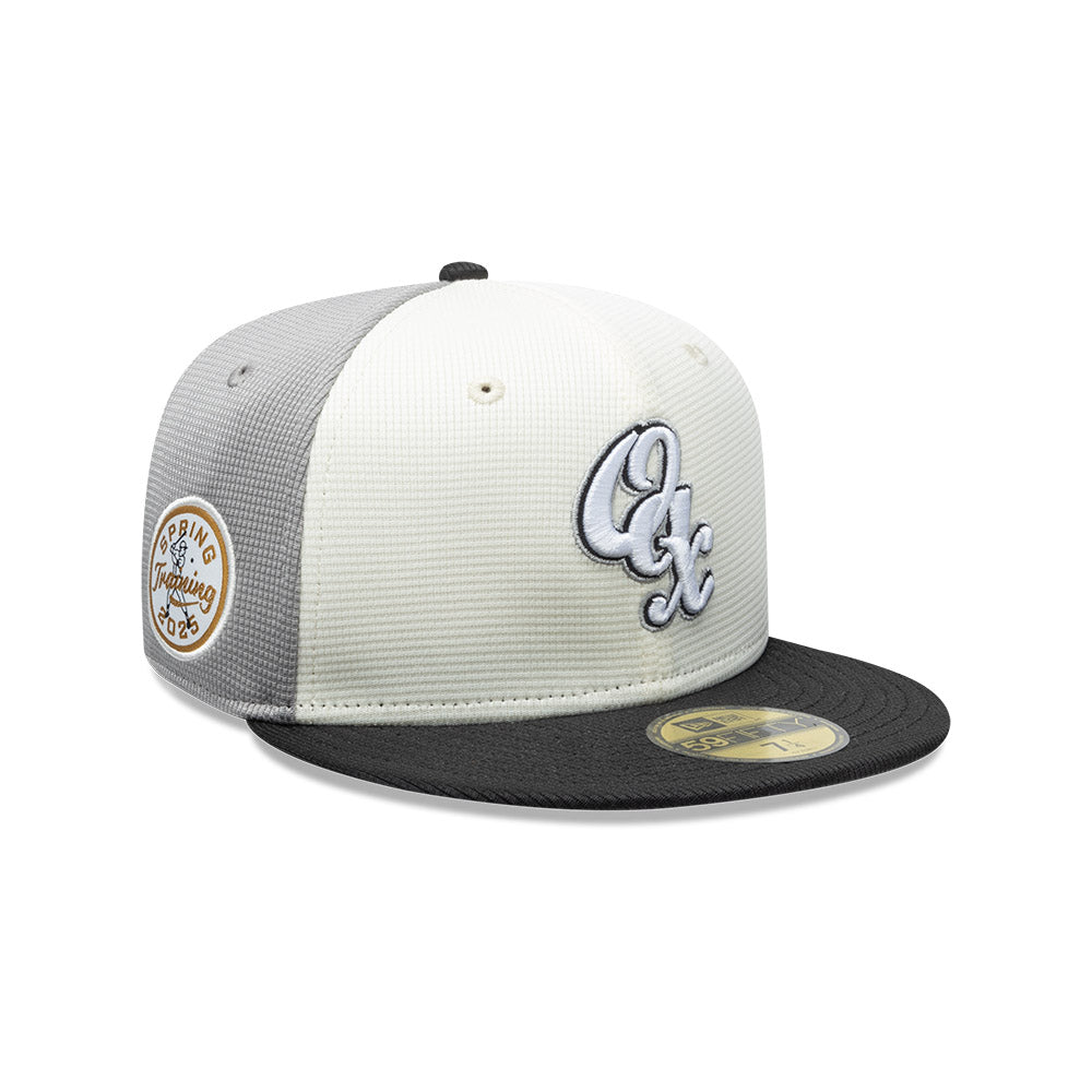 Esta gorra plana New Era 59FIFTY de Guerreros de Oaxaca de la colección LMB Spring Training 2025 presenta el logotipo de los Guerreros bordado en los paneles frontales, un parche Spring Training 2025 del lado derecho, el logo de la LMB 100 Años al reverso y el flag de New Era bordado del lado izquierdo. Cómprala ya.