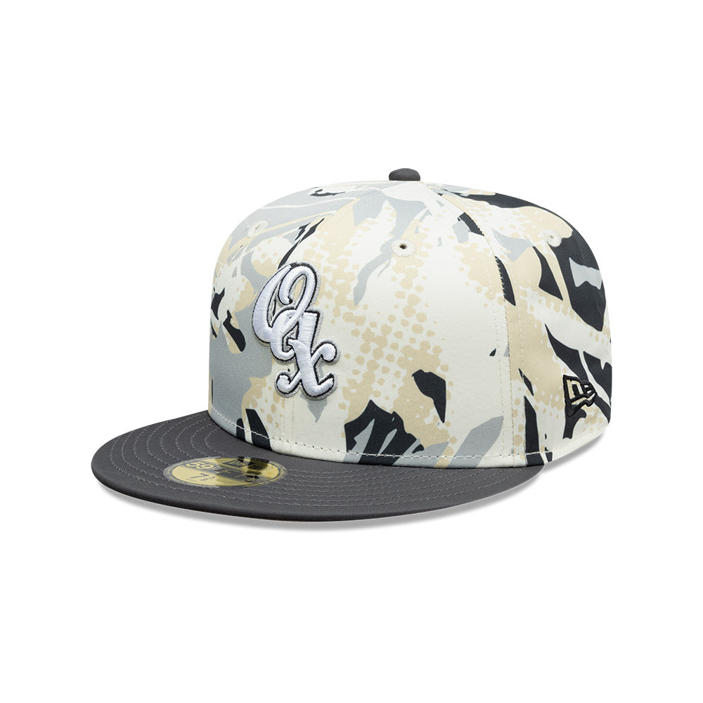 Esta gorra plana New Era 59FIFTY de Guerreros de Oaxaca de la colección LMB Spring Training Fan Pack 2025 presenta un estampado multicolor en la corona con el logotipo de los Guerreros bordado en los paneles frontales, el logo de la LMB 100 Años al reverso al reverso y el flag de New Era bordado del lado izquierdo. Apoya a tu equipo y cómprala ya.