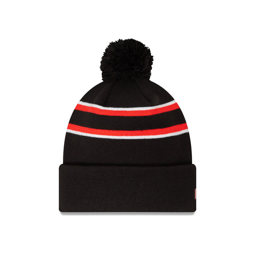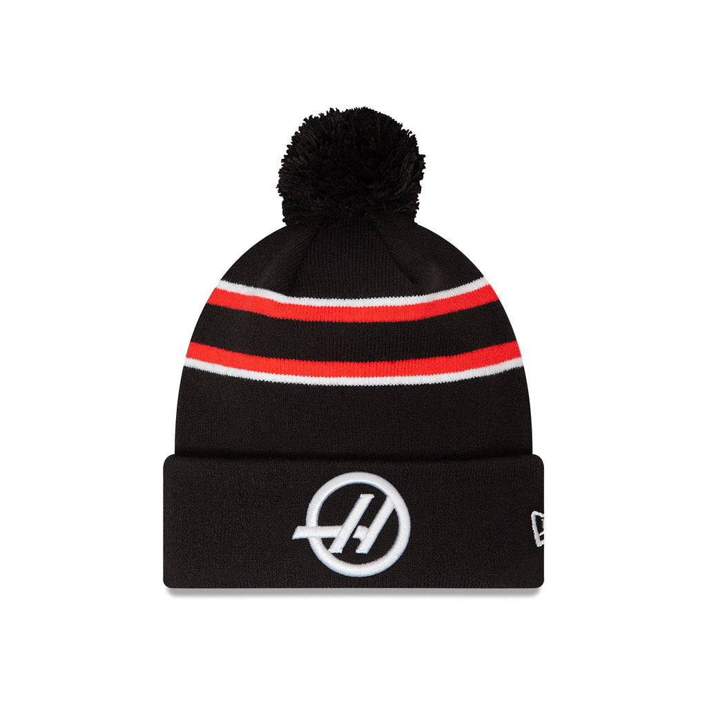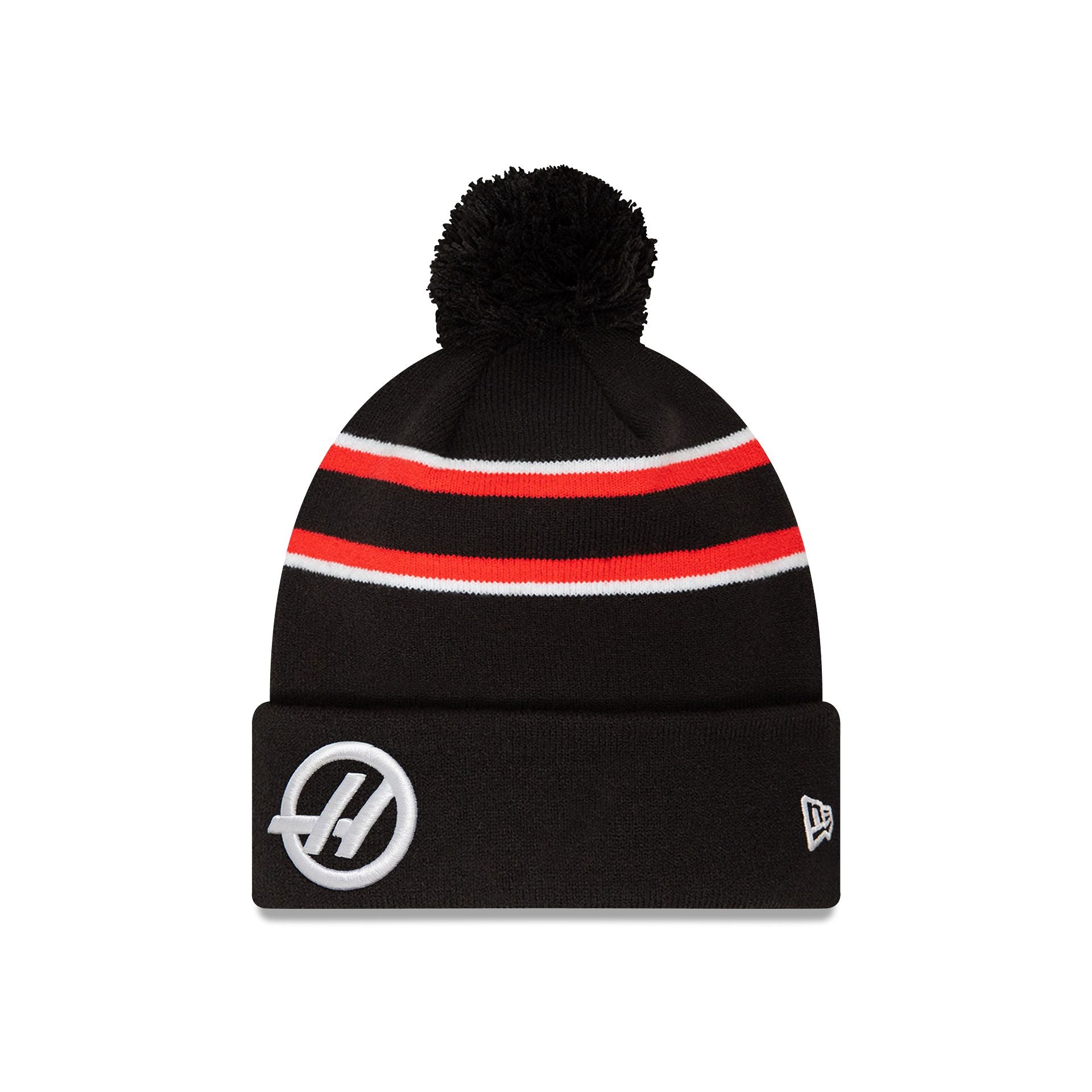 Este Knit New Era de Haas Team de la colección de la temporada 2024 presenta el logotipo de Haas en color blanco bordado en el frente de un diseño de tejido negro con líneas rojas, pom en la parte alta, y el flag de New Era bordado en el lado izquierdo. Apoya a tu escudería y cómpralo ya.