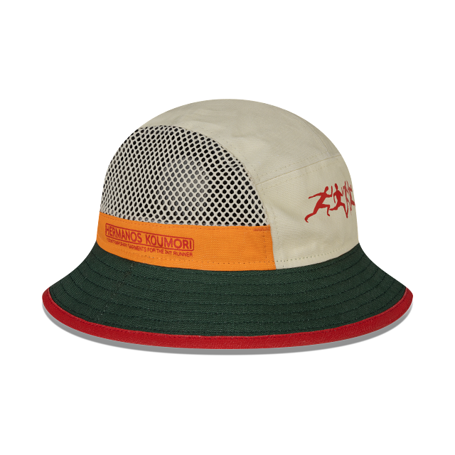 Este Bucket New Era en colaboración con Hermanos Koumori presenta un diseño multicolor con corredores al frente, inferior verde, corona blanca con malla y cinta ajustable. El emblema de los Hermanos Koumori a la derecha y el flag de New Era en el lado izquierdo. Entrena con estilo, cómprala ya.