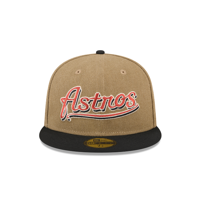 Esta gorra New Era 59FIFTY de Houston Astros de la colección MLB Canvas Crown presenta un diseño two tone con una distintiva corona café con el nombre de los Astros bordado en los paneles frontales, un parche conmemorativo del lado derecho, el MLB Batterman al reverso abajo del nombre del equipo y el flag de New Era bordado en el lado izquierdo. Cómprala ya.