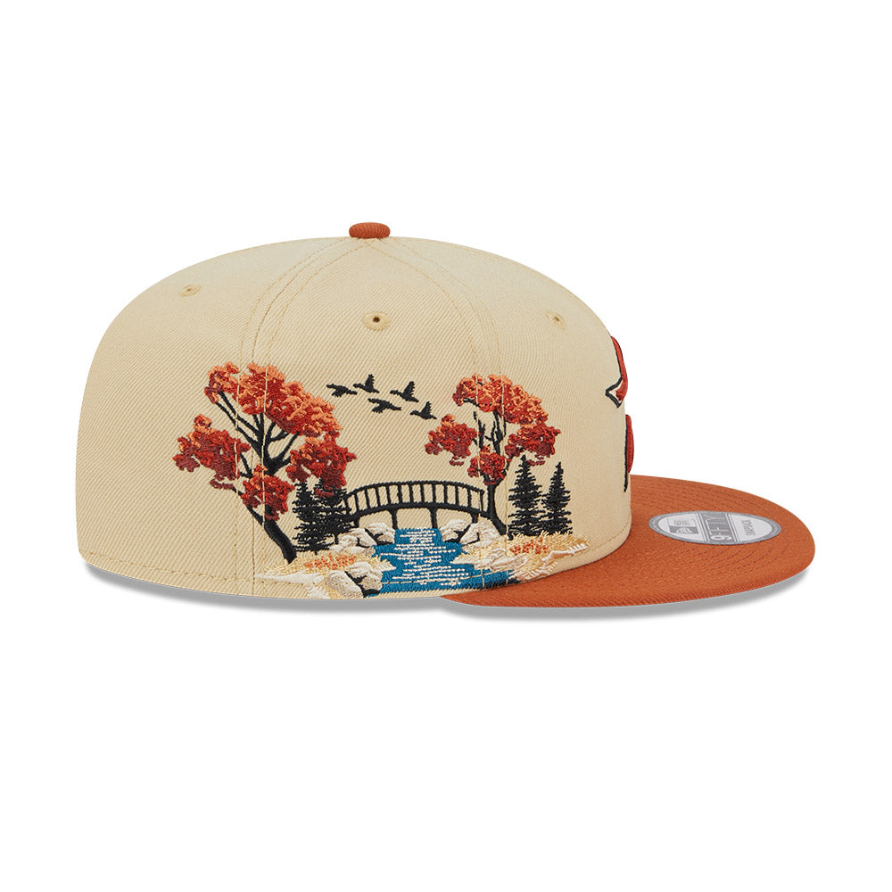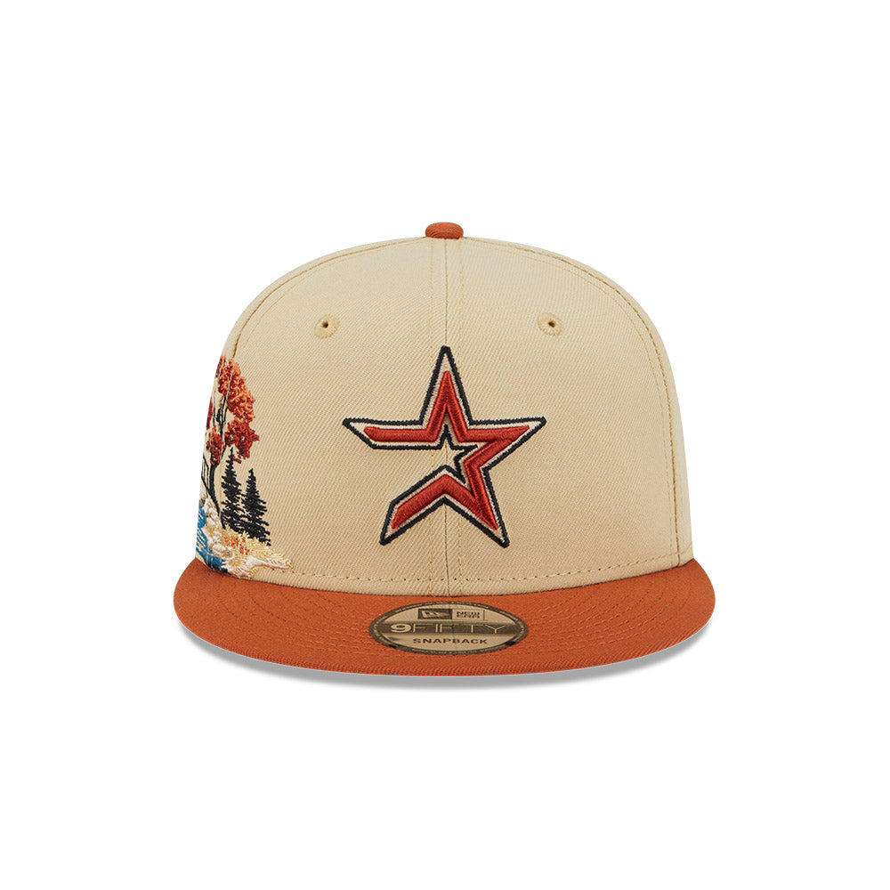 Esta gorra plana New Era 9FIFTY de Houston Astros de la colección MLB Fall Landscape presenta un diseño inspirado en la estación de otoño con el logotipo de los Astros bordado en los paneles frontales, un paisaje otoñal del lado derecho y el flag de New Era bordado del lado izquierdo. Cómprala ya.