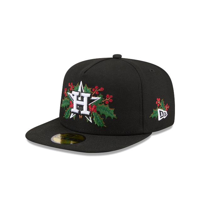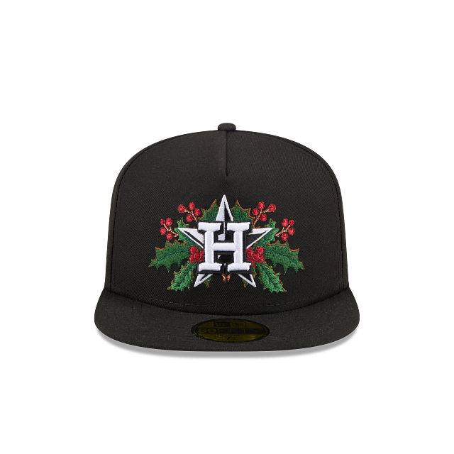 Esta gorra plana New Era 59FIFTY A-Frame de Houston Astros de la colección MLB Holly presenta el logotipo de los Astros con la planta de acebo bordado en el panel frontal, el MLB Batterman en la parte de atrás y el flag de New Era bordado del lado izquierdo. Cómprala ya.