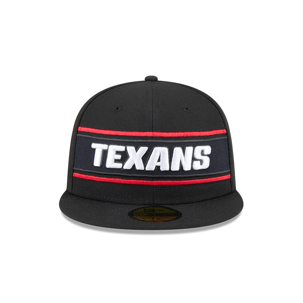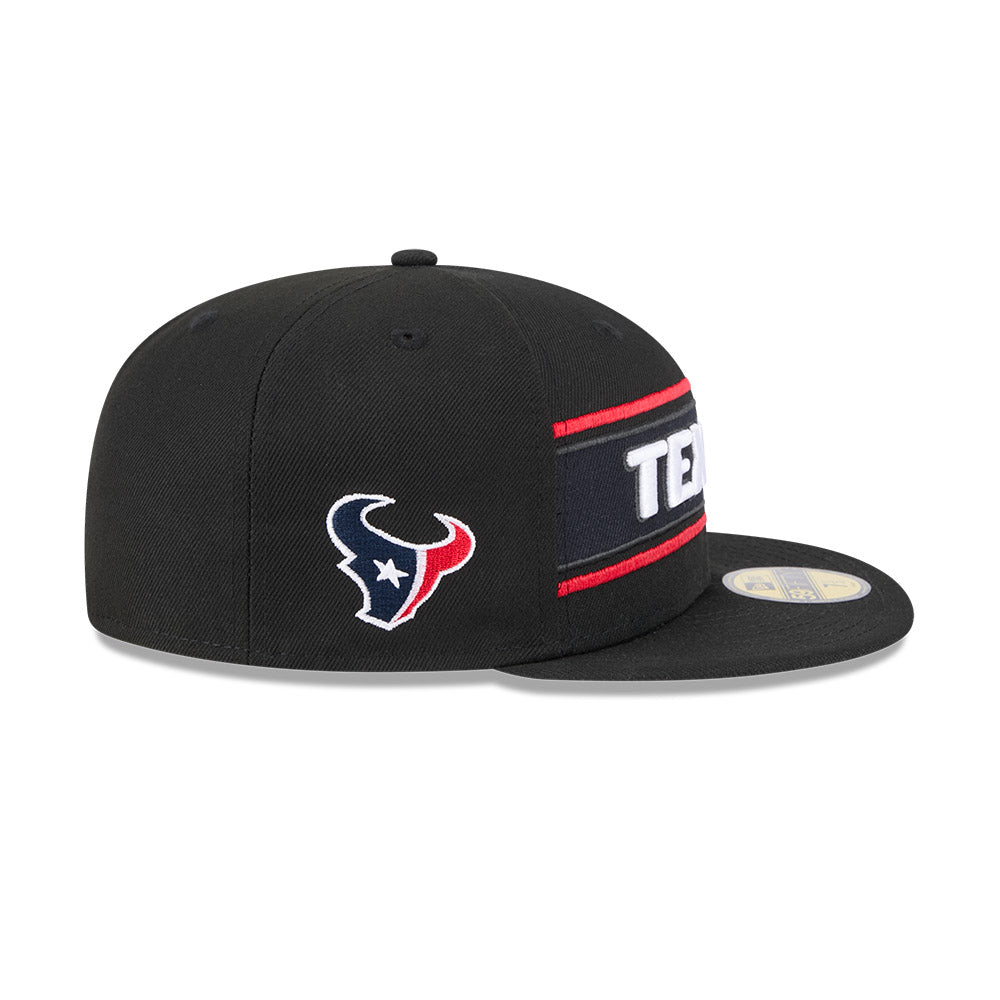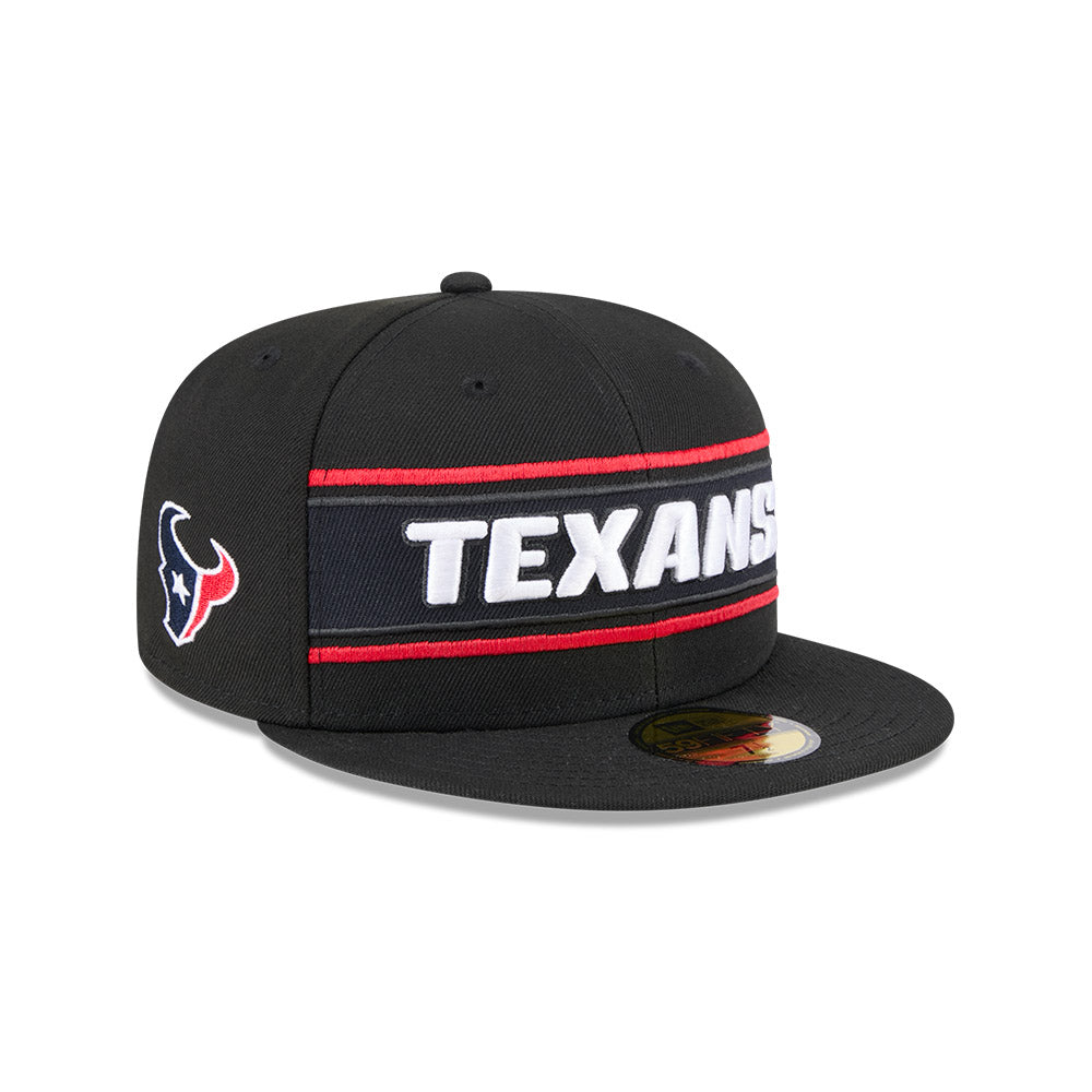 Esta gorra plana New Era 59FIFTY de Houston Texans de la colección NFL Sideline 2024 presenta el nombre de los Texans bordado en los paneles frontales sobre una franja en los colores del equipo, el logo del equipo de lado derecho, el logo de la NFL bordado en la parte trasera y el flag de New Era bordado en el lado izquierdo. Cómprala ya.