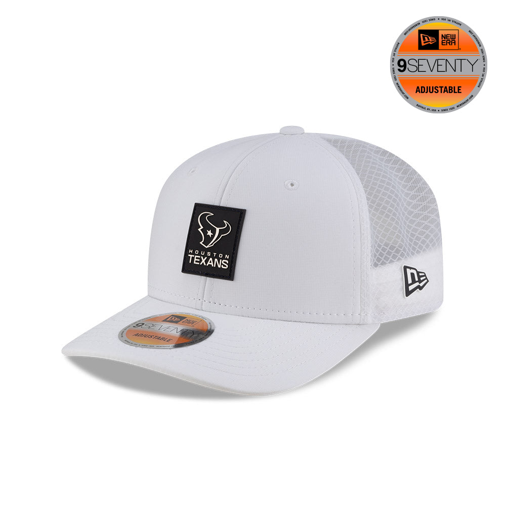 Presenta el logotipo de los Texans en silicón tipo engomado en los paneles frontales, malla trucker ligera para mejor ventilación, el logo de la NFL en la parte derecha de atrás y el flag de New Era engomado del lado izquierdo. Apoya a tu equipo y cómprala ya.