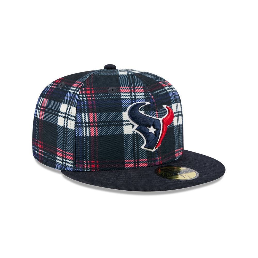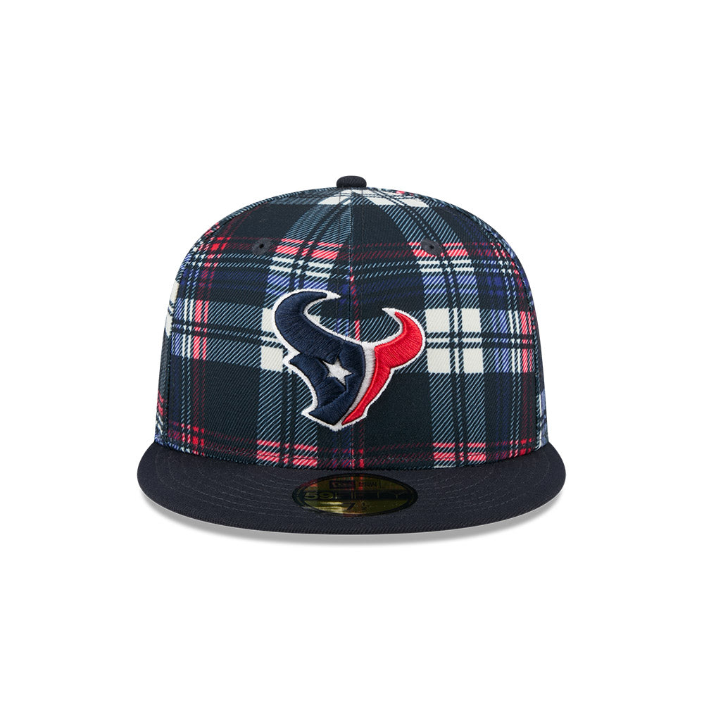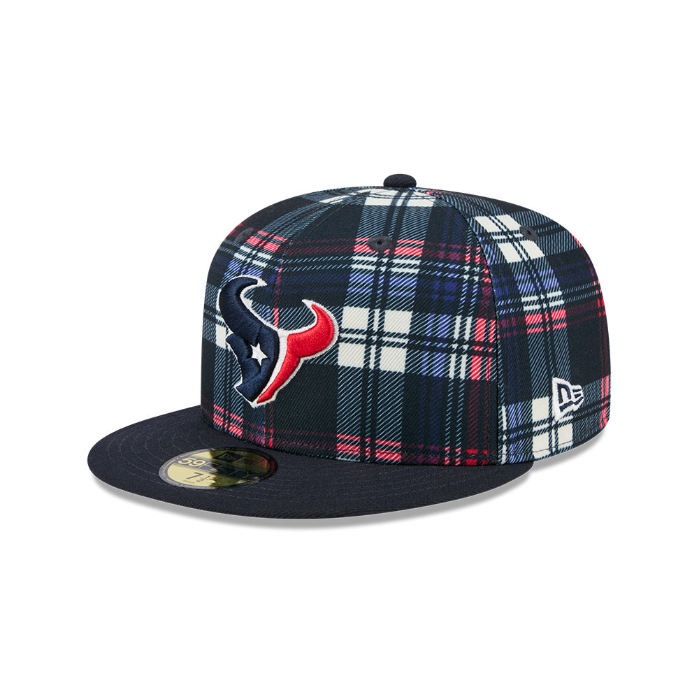 Esta gorra plana New Era 59FIFTY de Houston Texans de la colección NFL Sideline 2024 presenta un diseño a cuadros con el logotipo de los Texans bordado en los paneles frontales y el flag de New Era bordado en el lado izquierdo. Cómprala ya.