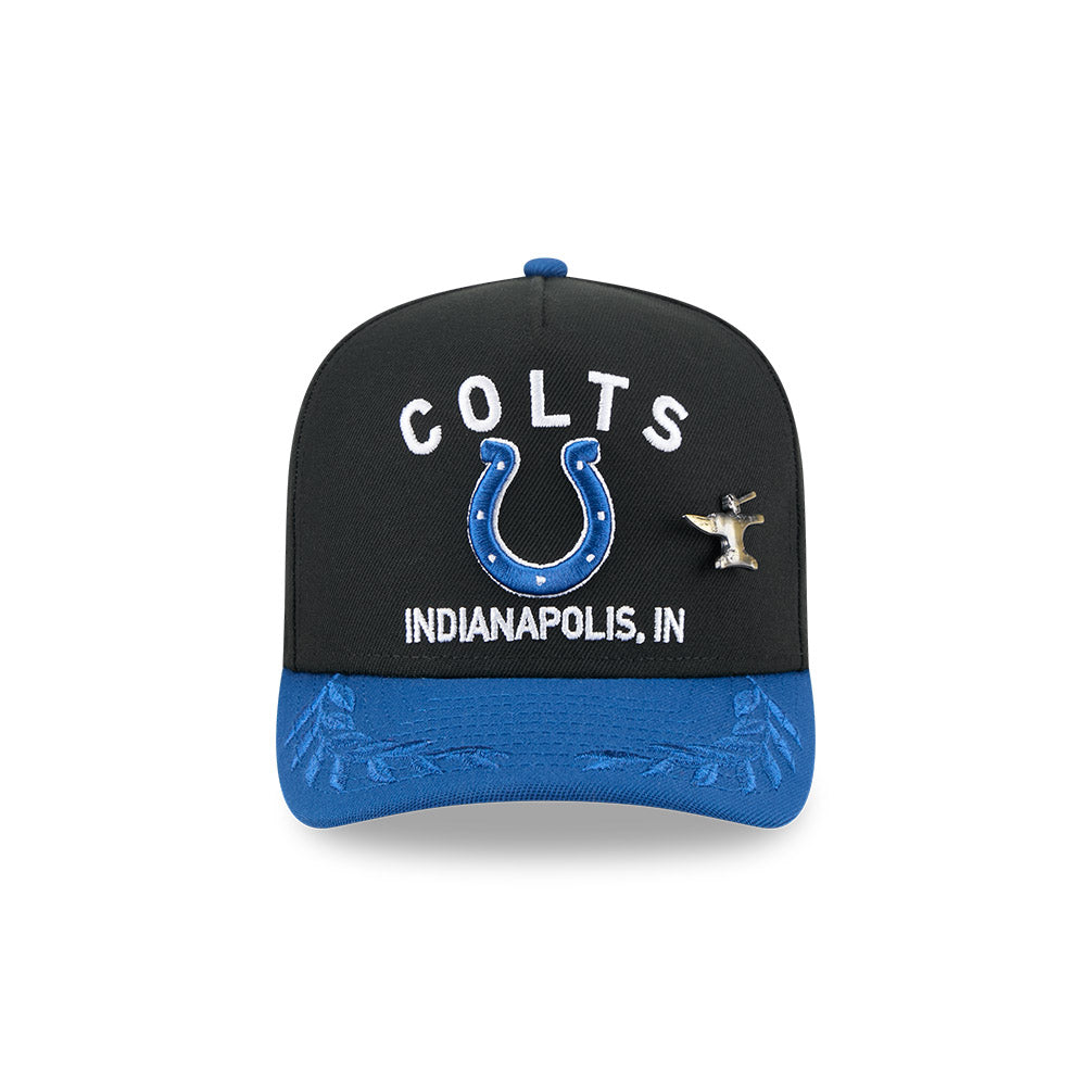 Esta gorra curva New Era 59FIFTY A-Frame de Indianapolis Colts de la colección NFL Draft 2025 presenta el nombre y logotipo de los Colts bordados en los paneles frontales junto con un pin representativo del equipo, laureles bordados en el visor, el logo de la NFL al reverso y el flag de New Era bordado del lado izquierdo. Cómprala ya.