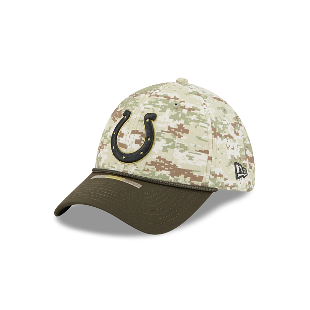 Esta gorra curva New Era 39THIRTY de Indianapolis Colts de la colección NFL Salute to Service 2025 presenta un diseño de camuflaje con el logotipo de los Colts bordado en los paneles frontales, la bandera de Estados Unidos del lado derecho, el logo de la NFL en la parte de atrás, el logo del equipo en el undervisor y el flag de New Era bordado del lado izquierdo. Cómprala ya.