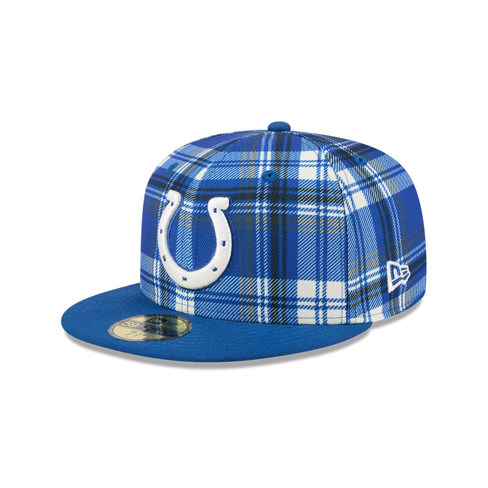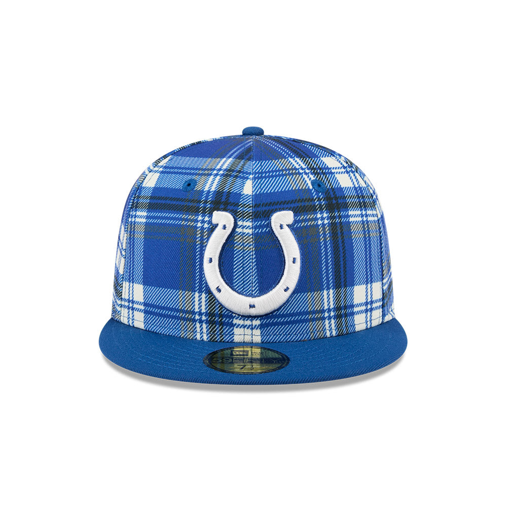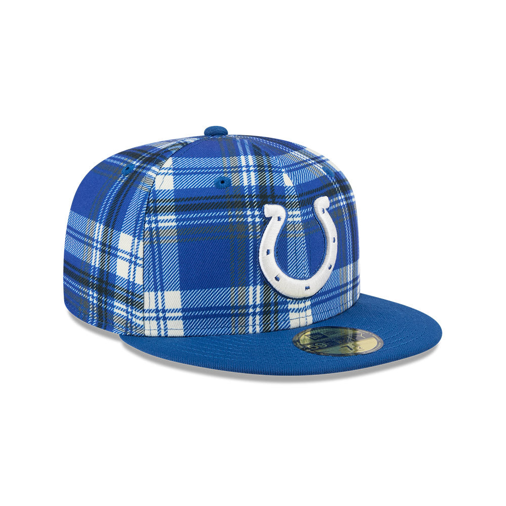 Esta gorra plana New Era 59FIFTY de Indianapolis Colts de la colección NFL Sideline 2024 presenta un diseño a cuadros con el logotipo de los Colts bordado en los paneles frontales y el flag de New Era bordado en el lado izquierdo. Cómprala ya.