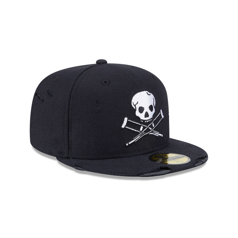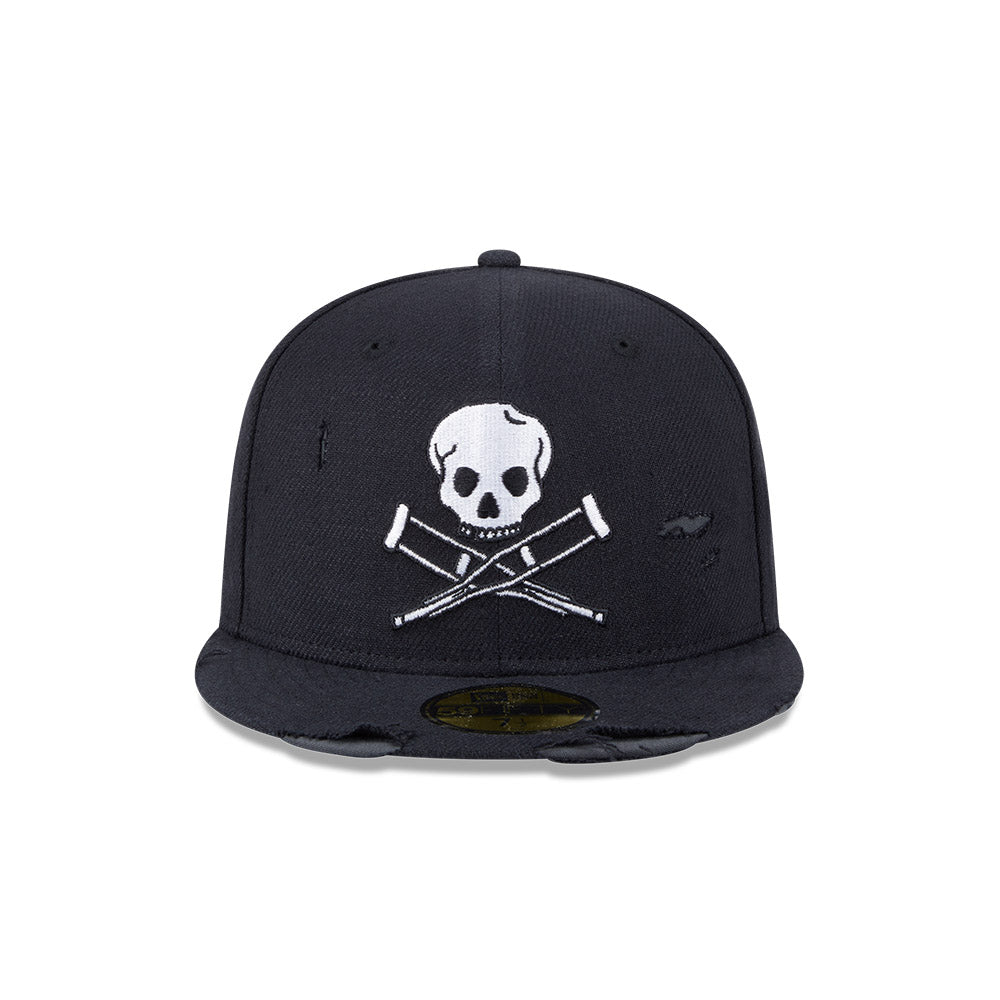 Esta gorra plana New Era 59FIFTY de Jackass presenta un diseño con efecto desgastado y con rasgaduras, el característico logotipo de la calavera y muletas bordado en los paneles frontales y el flag de New Era bordado del lado izquierdo. Cómprala ya.