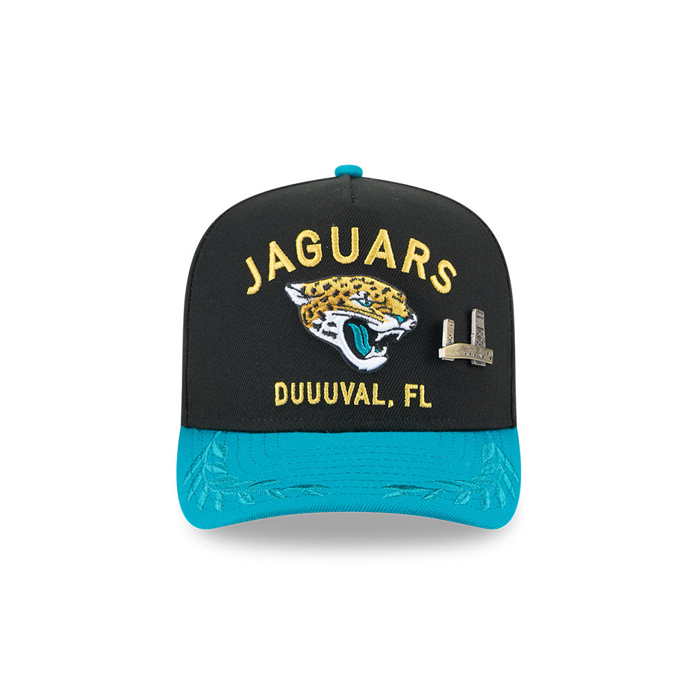 Esta gorra curva New Era 59FIFTY A-Frame de Jacksonville Jaguars de la colección NFL Draft 2025 presenta el nombre y logotipo de los Jaguars bordados en los paneles frontales junto con un pin representativo del equipo, laureles bordados en el visor, el logo de la NFL al reverso y el flag de New Era bordado del lado izquierdo. Cómprala ya.