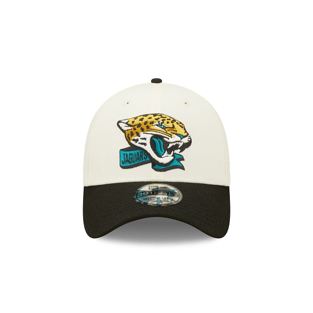 La temporada de la NFL ya esta aquí. Representa a tu equipo con esta gorra New Era 39THIRTY de Jacksonville Jaguars NFL Sideline 2022 la cual presenta el logo del equipo bordado en los paneles frontales a juego con una bandera con el nombre y su conferencia, un parche de la NFL en el lado derecho y un logo del equipo en la parte trasera. Cómprala ya.