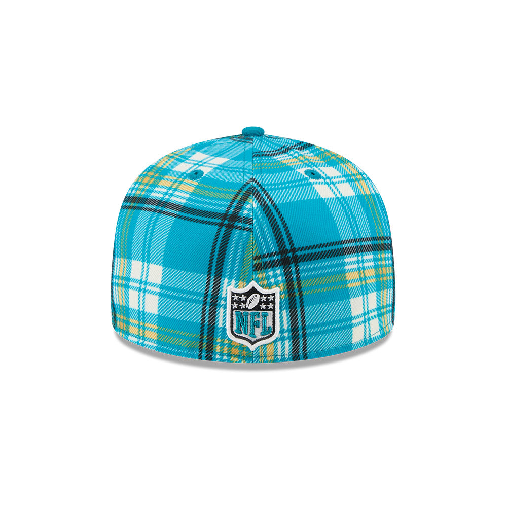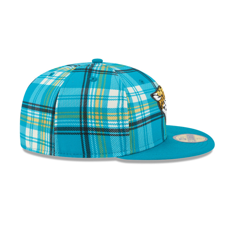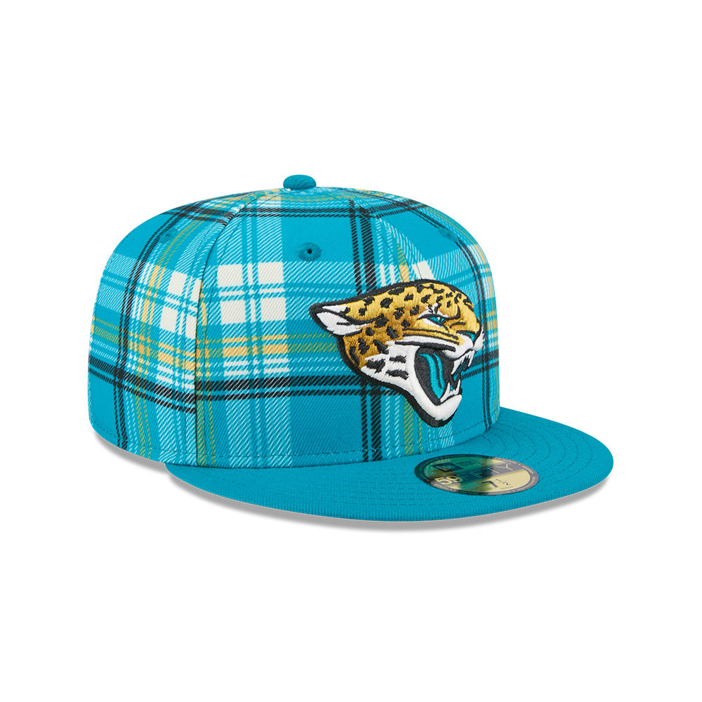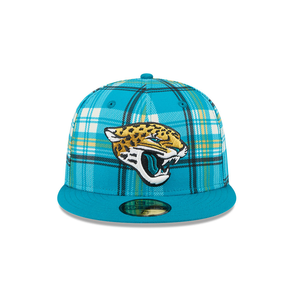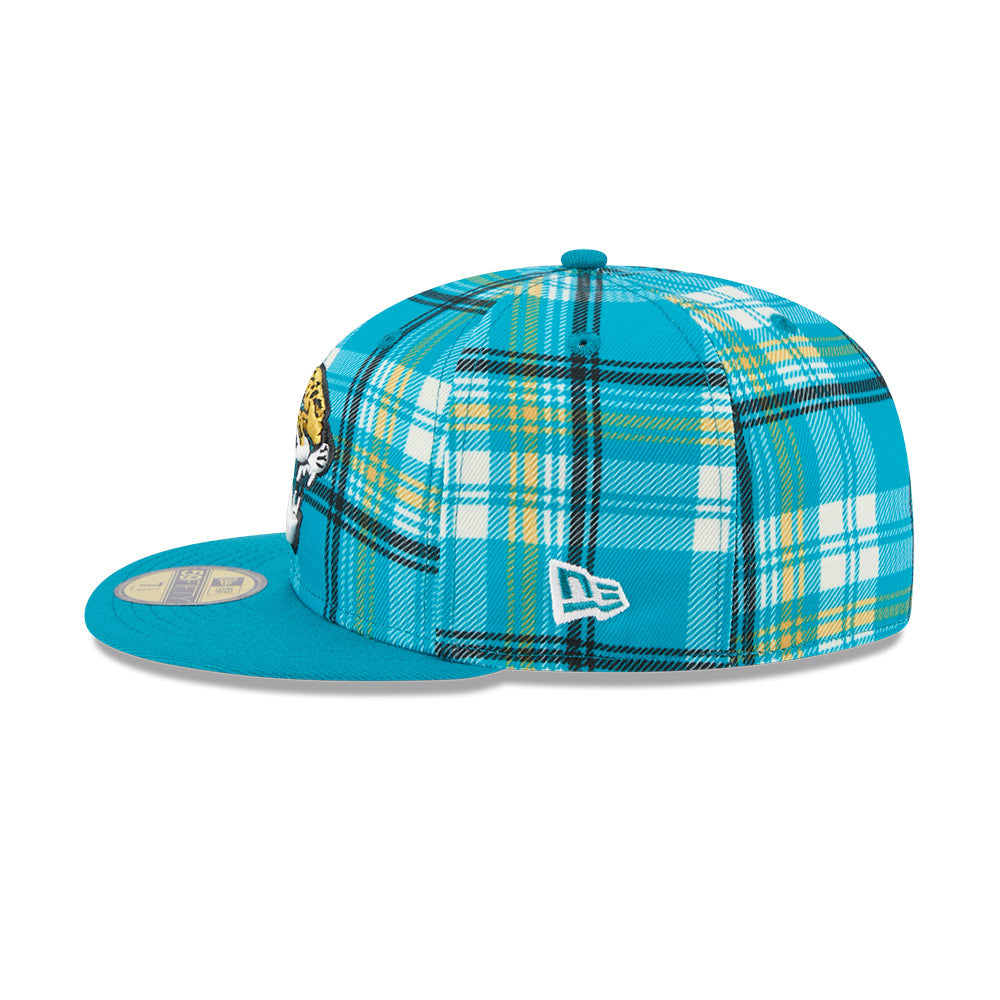 Esta gorra plana New Era 59FIFTY de Jacksonville Jaguars de la colección NFL Sideline 2024 presenta un diseño a cuadros con el logotipo de los Jaguars bordado en los paneles frontales y el flag de New Era bordado en el lado izquierdo. Cómprala ya.