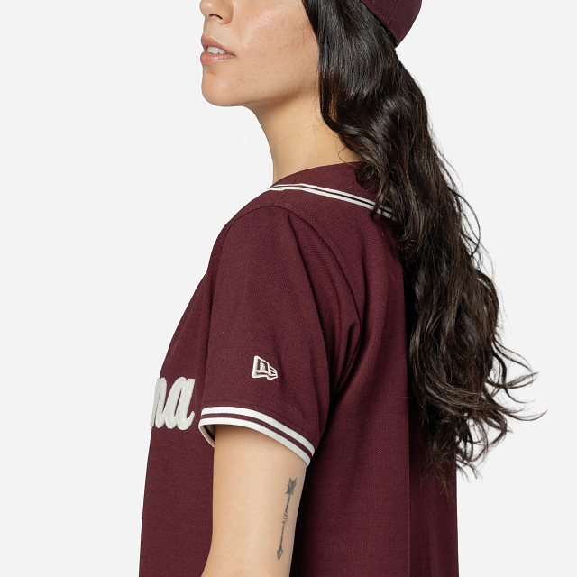 Este Jersey New Era para Mujer de Algodoneros de Unión Laguna de la colección LMB Retro presenta el nombre de la sede de los Algodoneros bordado en la parte frontal, un parche conmemorativo en la manga derecha y el flag de New Era bordado en la manga izquierda. Cómpralo ya.