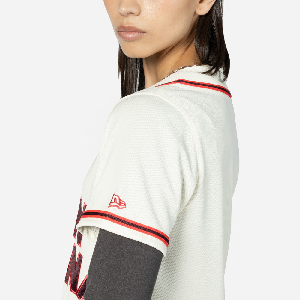 Este Jersey New Era para Mujer de Algodoneros de Unión Laguna de la colección LMB Jerseys presenta el nombre de la sede de los Algodoneros bordado en la parte frontal y el flag de New Era bordado en la manga izquierda. Apoya a tu equipo y cómpralo ya.