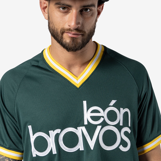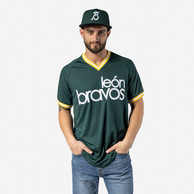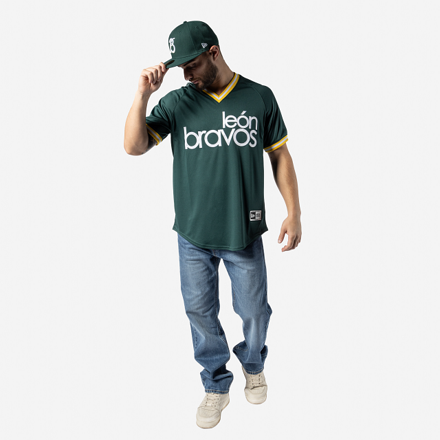 Luce como tus peloteros favoritos y apoya a tu equipo en una nueva temporada de la Liga Mexicana de Beisbol con este Jersey New Era de Bravos de León de la colección de la LMB que presenta el logotipo de Bravos al frente, el logo de la LMB al reverso y el flag New Era en la manga izquierda. ¡No te quedes fuera del diamante y cómpralo ya!