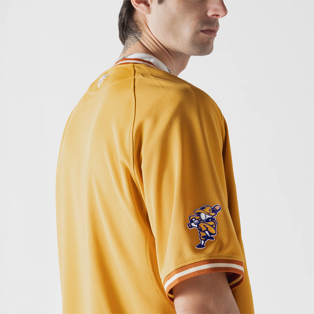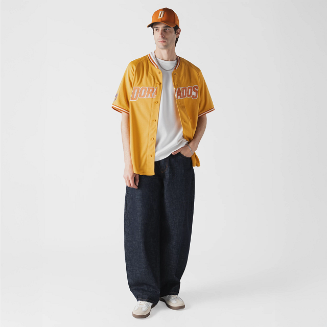 Apoya a tu equipo en esta temporada 2026 con el Jersey New Era de Dorados de Chihuahua alternativo de corte regular que ofrece un ajuste cómodo y clásico, fiel a la talla. Presenta un diseño inspirado en las Barrancas del Cobre, Dorados bordado en la parte frontal, la frase El Estado Grande en el interior del cuello, el logo de la LMB en la parte de atrás, un parche con el logotipo retro del equipo en la manga derecha y el flag de New Era bordado en la manga izquierda. Cómprala ya.