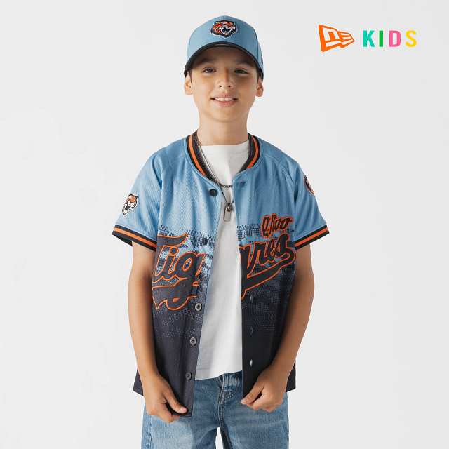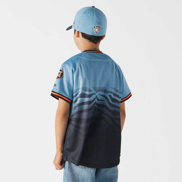 Apoya a tu equipo en esta temporada 2026 con el Jersey New Era para Niña o Niño de Tigres de Quintana Roo alternativo de corte regular que ofrece un ajuste cómodo y clásico, fiel a la talla. Presenta un diseño inspirado en las olas del mar, Q.Roo Cancún bordado en la parte frontal, la frase El Equipo que Nació Campeón en el interior del cuello, parche del logo del equipo en la manga derecha, parche Valenzuela y el flag de New Era bordado en la manga izquierda. Cómpralo ya.