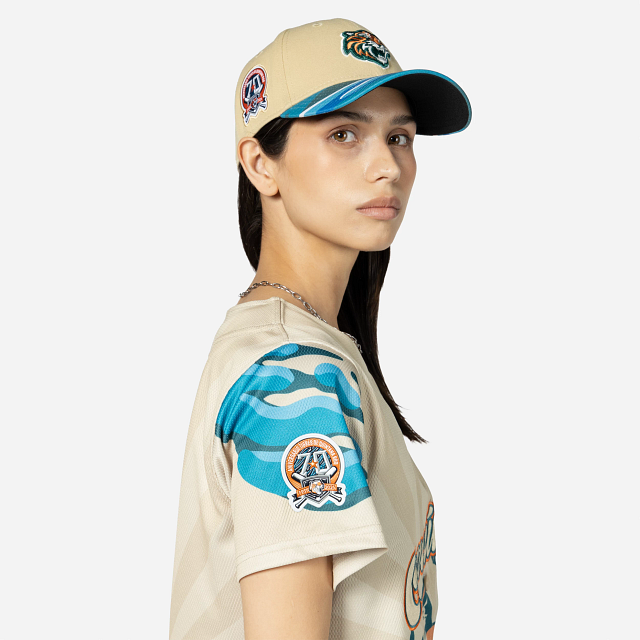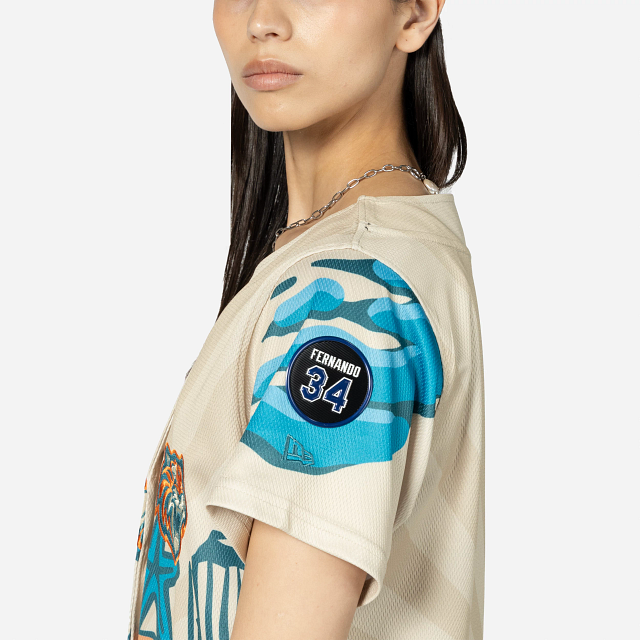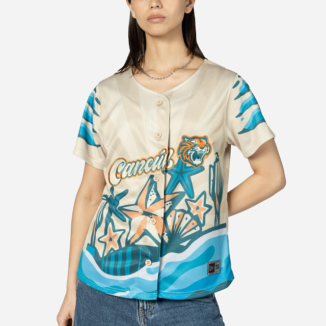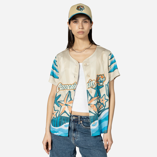 Este Jersey New Era para Mujer de Tigres de Quintana Roo de la colección LMB Jerseys presenta un estampado representativo de la ciudad del equipo, el nombre de la sede de los Tigres bordado en la parte frontal, un parche del 70 aniversario en la manga derecha y el flag de New Era bordado junto con un parche conmemorativo de Fernando Valenzuela en la manga izquierda. Apoya a tu equipo y cómpralo ya.