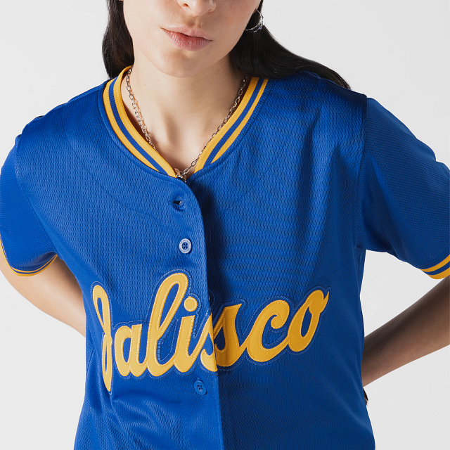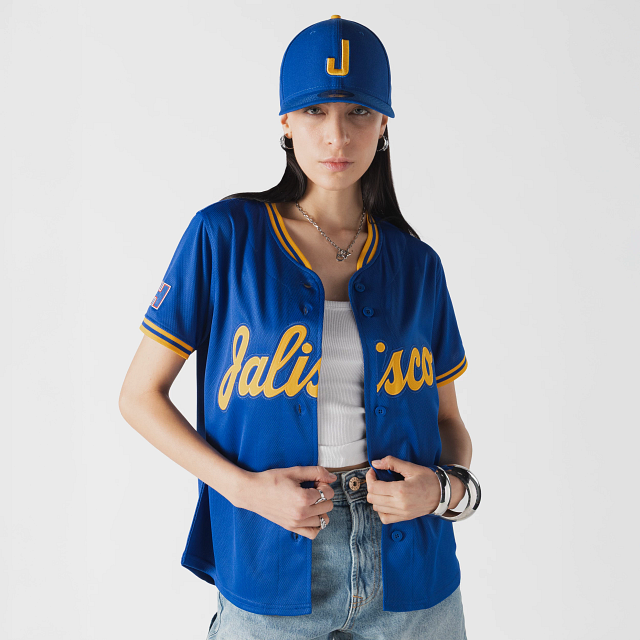 Apoya a tu equipo en esta temporada 2026 con el Jersey New Era para Mujer de Charros de Jalisco de visita de corte regular que ofrece un ajuste cómodo y clásico, fiel a la talla. Presenta un diseño en color azul, Jalisco bordado en la parte frontal, la frase La Perla Tapatía en el interior del cuello, el logo del equipo en la manga derecha y el flag de New Era bordado en la manga izquierda. Cómprala ya.