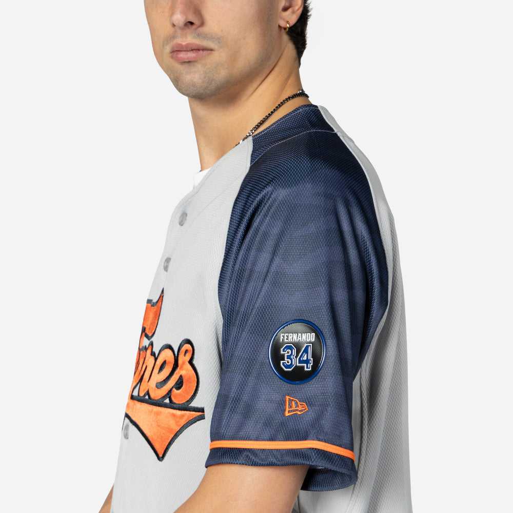 Este Jersey New Era de Tigres de Quintana Roo de la colección LMB Jerseys presenta el nombre de los Tigres bordado en la parte frontal, el logo de la LMB 100 Aniversario en la parte de atrás del cuello, un parche del 70 aniversario en la manga derecha y el flag de New Era bordado junto con un parche conmemorativo de Fernando Valenzuela en la manga izquierda. Apoya a tu equipo y cómpralo ya.