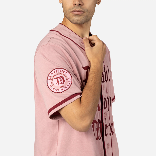 Este Jersey New Era de la colección Diablos Rojos del México X Roji presenta el nombre de los Diablos bordado en la parte frontal, un parche Siempre Ando Diablo en la manga derecha, el logotipo del equipo en la parte de atrás y el flag de New bordado en la manga izquierda. Cómprala ya.