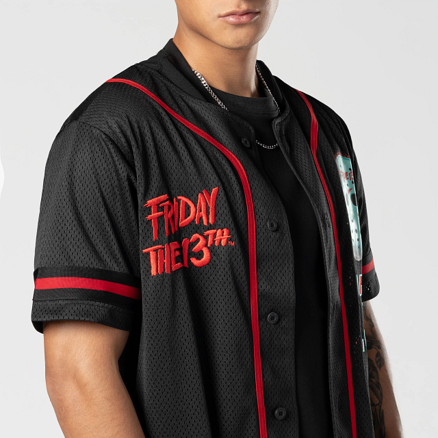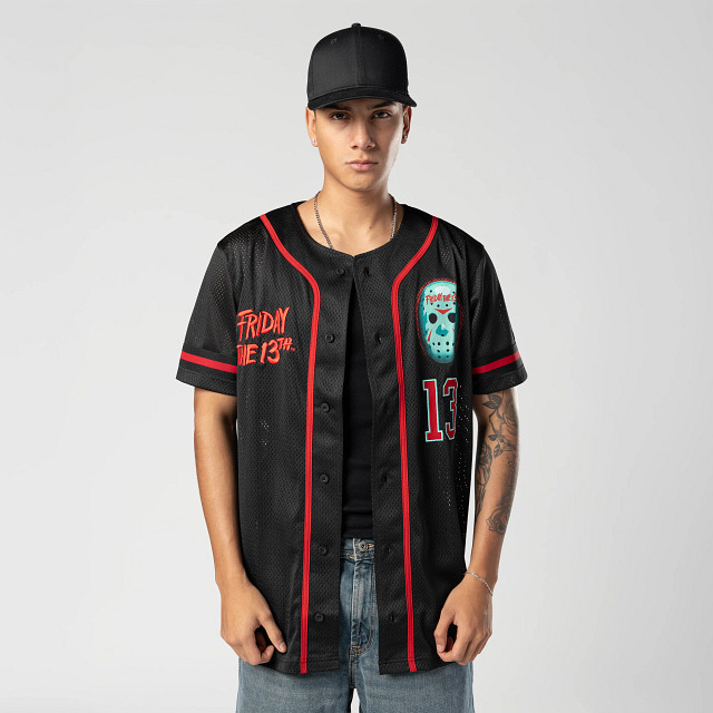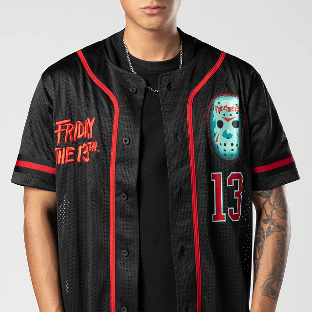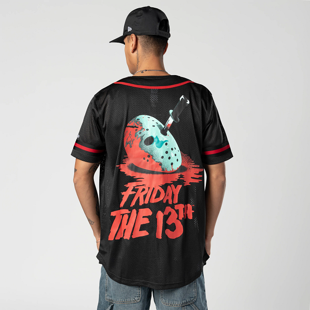 Este Jersey New Era de la colección Horror Movies presenta el nombre de la película Friday the 13Th y su personaje Jason estampados en la parte frontal y en la parte de atrás y el flag de New Era bordado en la manga izquierda. Cómpralo ya.