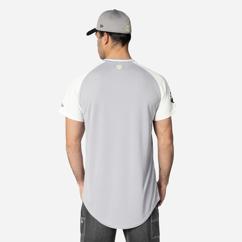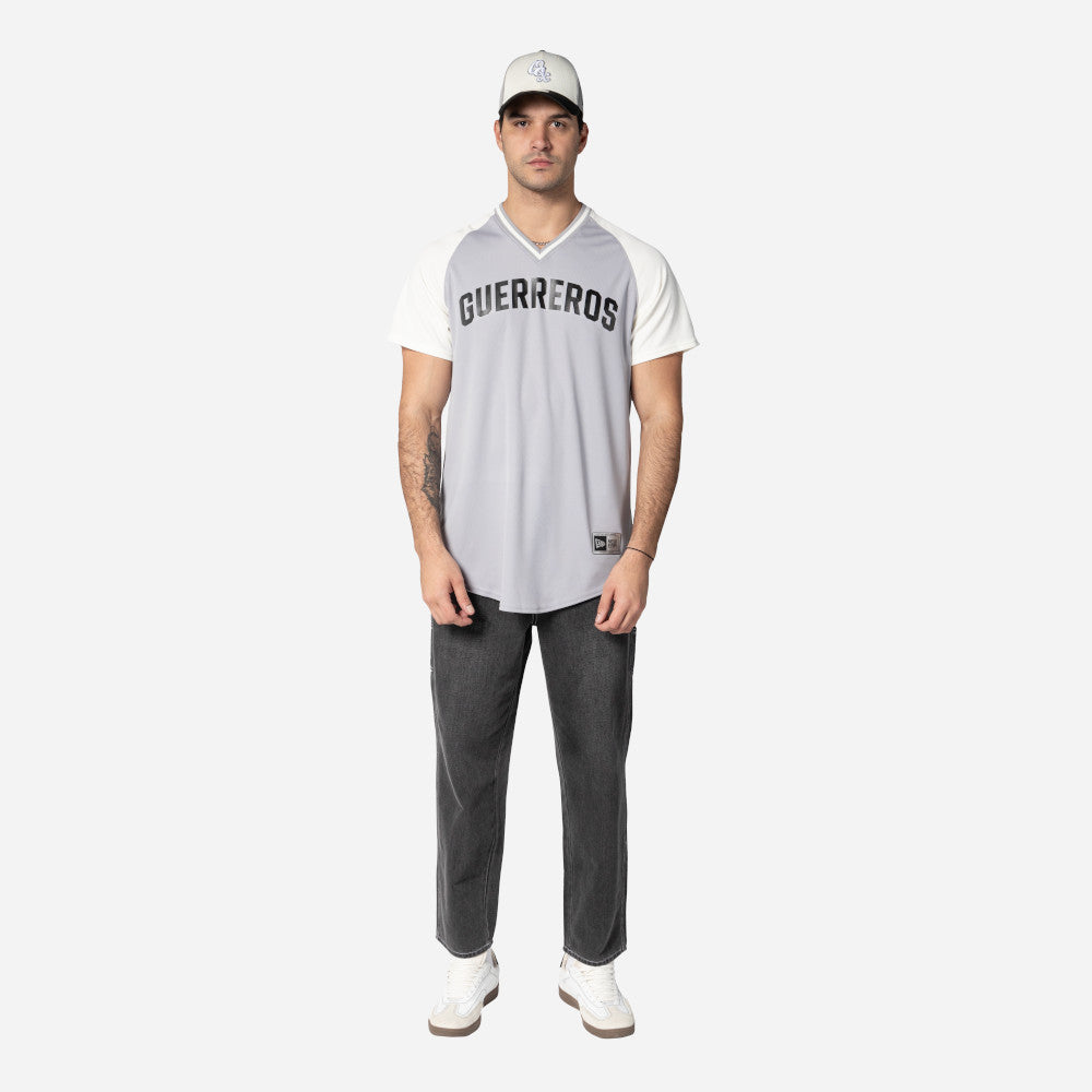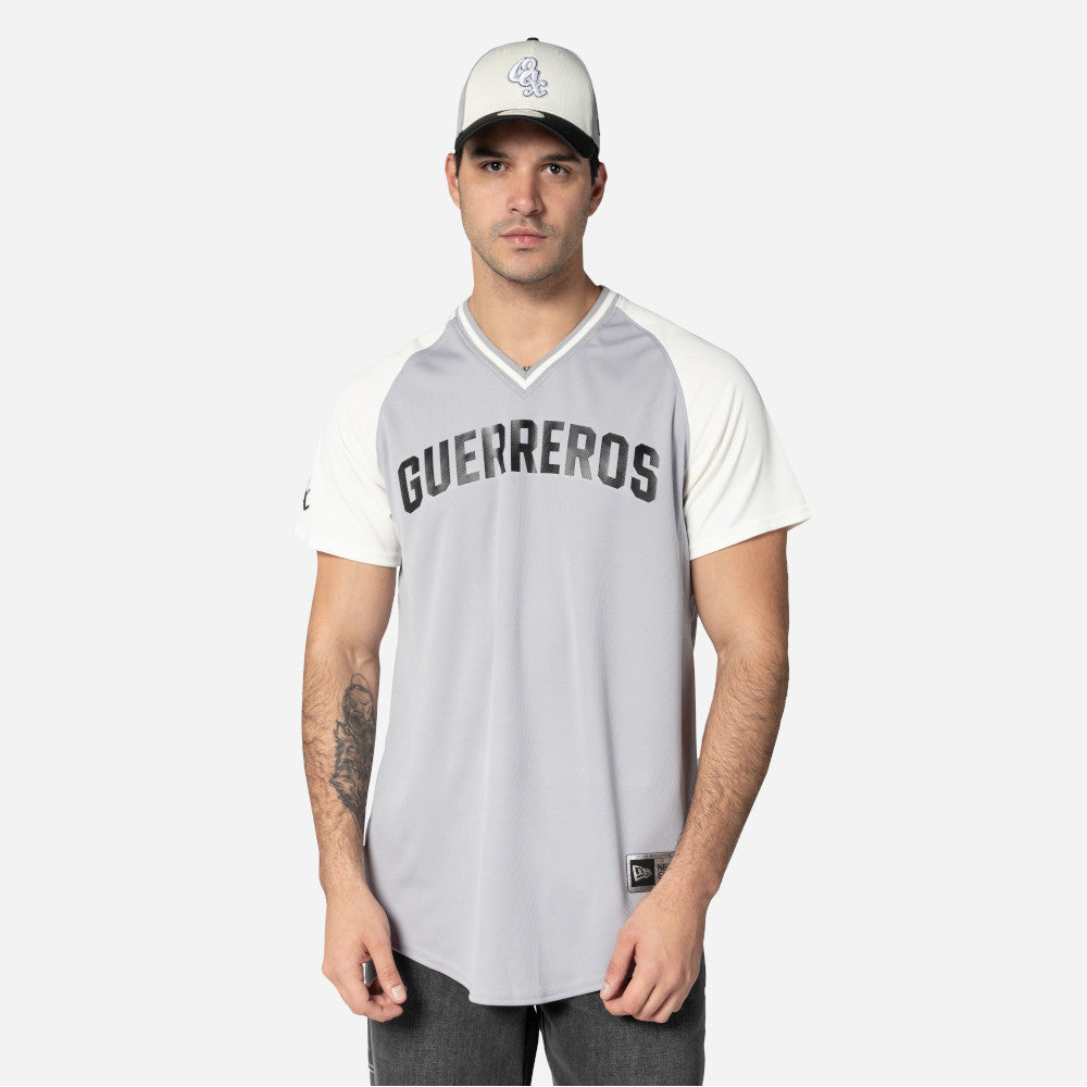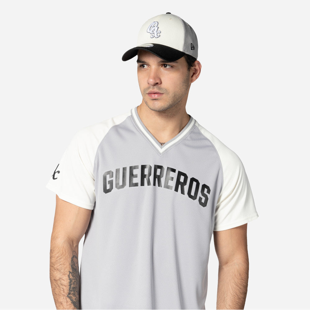 Este Jersey New Era de Guerreros de Oaxaca de la colección LMB Spring Training 2025 presenta el nombre de los Guerreros en la parte frontal, el logotipo del equipo en la manga derecha, el logo de la LMB 100 Años en la parte de atrás del cuello y el flag de New Era en la manga izquierda. Cómpralo ya.