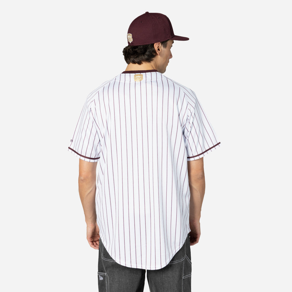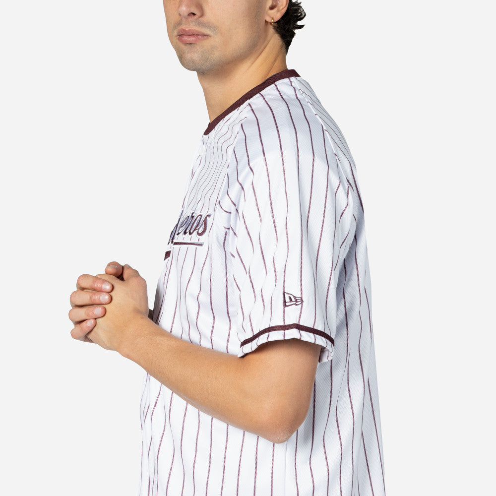Este Jersey New Era de Algodoneros de Unión Laguna de la colección LMB Jerseys presenta un diseño a rayas con el nombre de los Algodoneros bordado en la parte frontal, el logo de la LMB 100 Aniversario en la parte de atrás del cuello y el flag de New Era bordado en la manga izquierda. Apoya a tu equipo y cómpralo ya.