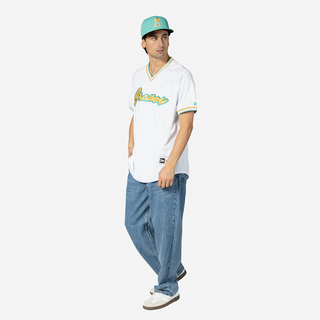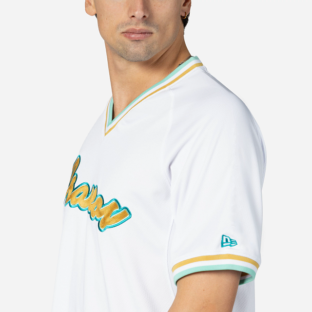 Este Jersey New Era de Bravos de León de la colección LMB Jerseys presenta el nombre de los Bravos bordado en la parte frontal, el logo de la LMB 100 Aniversario en la parte de atrás del cuello, el logo del equipo en la manga derecha y el flag de New Era bordado en la manga izquierda. Apoya a tu equipo y cómpralo ya.