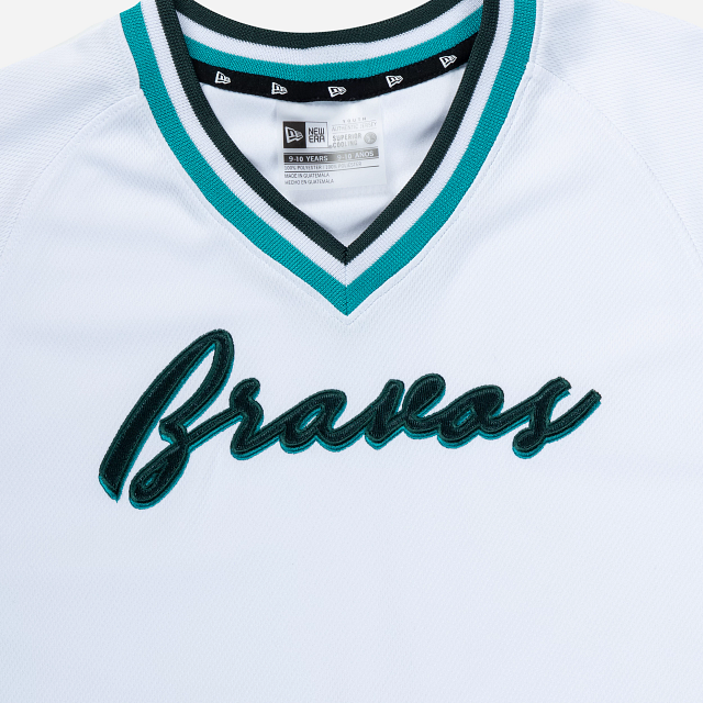 Luce como tus peloteros favoritos y apoya a tu equipo en una nueva temporada de la Liga Mexicana de Beisbol con este Jersey New Era para Niña o Niño de Bravos de León de la colección de la LMB que presenta el logotipo de Bravos al frente, el logo de la LMB al reverso y el flag New Era en la manga izquierda. ¡No te quedes fuera del diamante y cómpralo ya!
