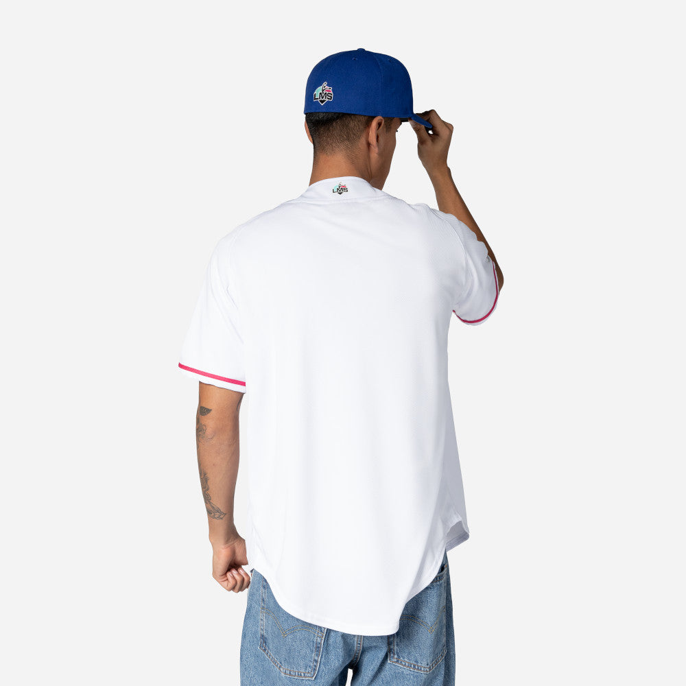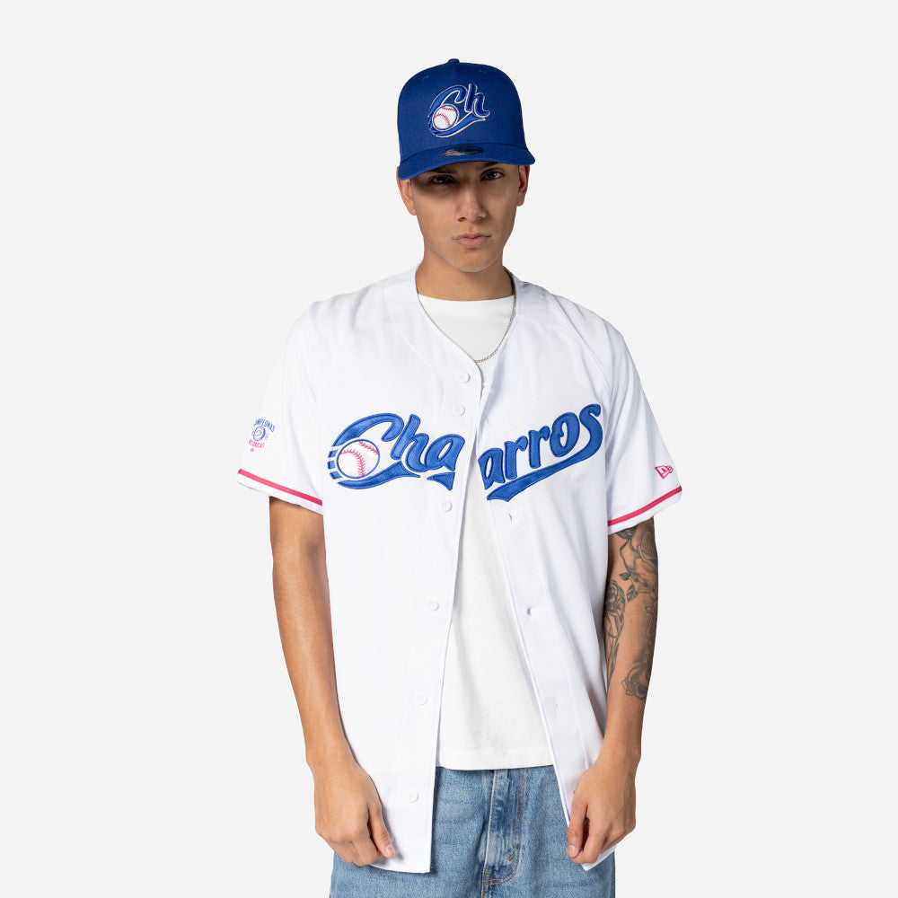 Este Jersey New Era de Charros de Jalisco de la colección LMS Jerseys 2025 presenta un diseño con el nombre de los Charros en la parte frontal, el logo del equipo en la manga derecha, el logo de la LMS en la parte de atrás del cuello y el flag de New Era bordado en la manga izquierda. Apoya a tu equipo y cómpralo ya.
