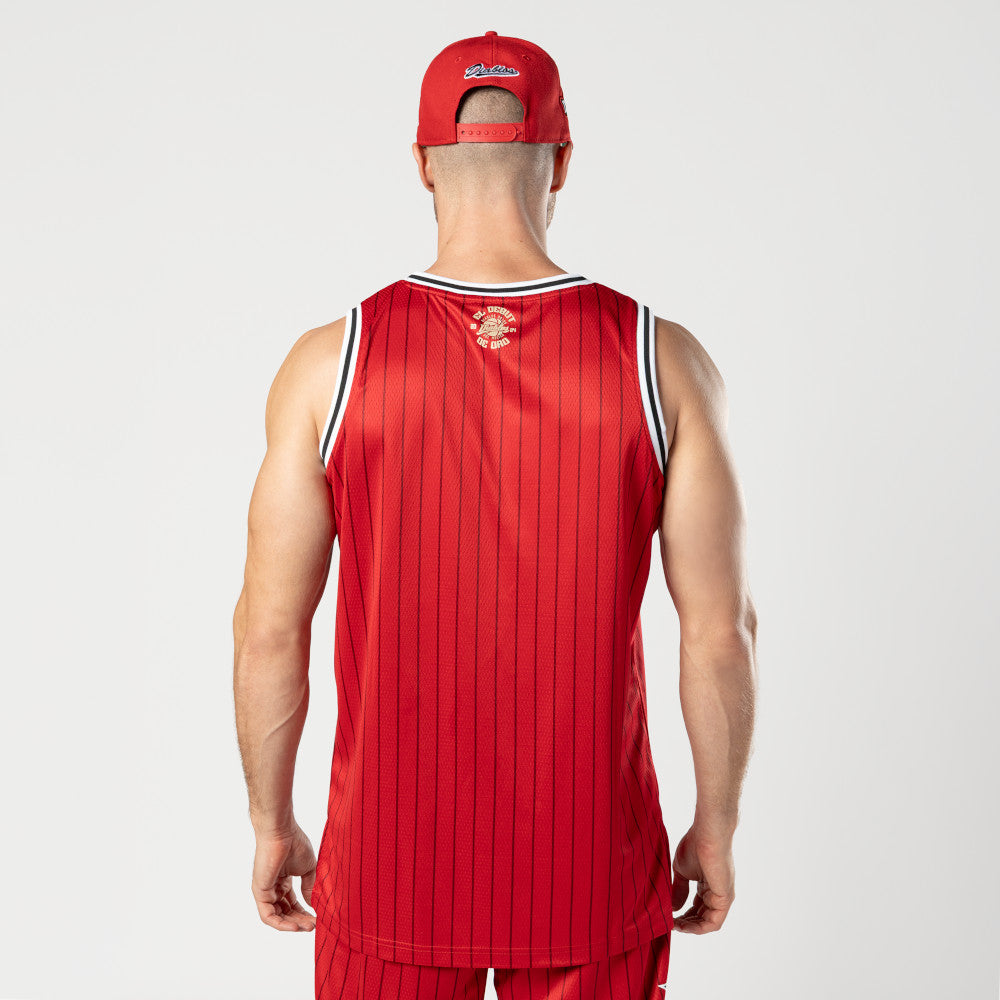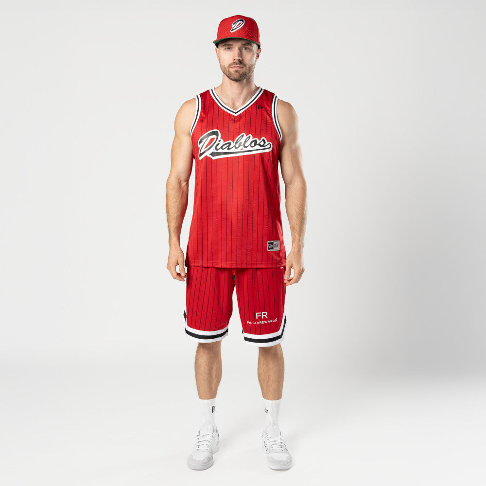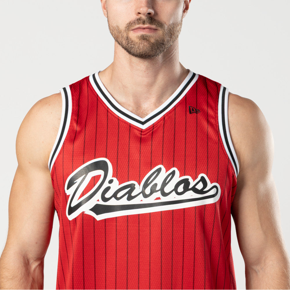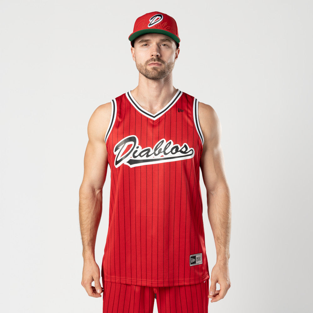 Este Jersey New Era versión aficionado de Diablos Rojos Basquetbol presenta un diseño a rayas con el nombre de los Diablos en la parte frontal y el flag de New Era bordado en la parte superior. Cómpralo ya.