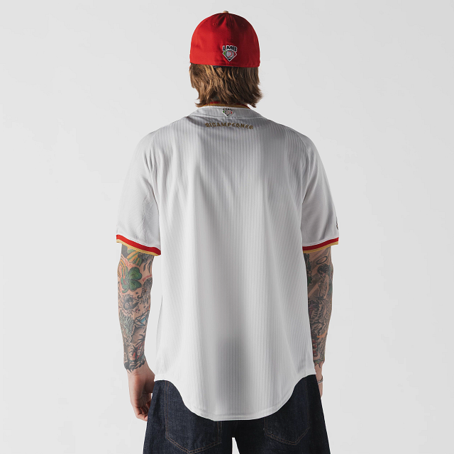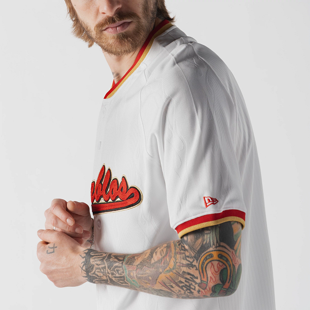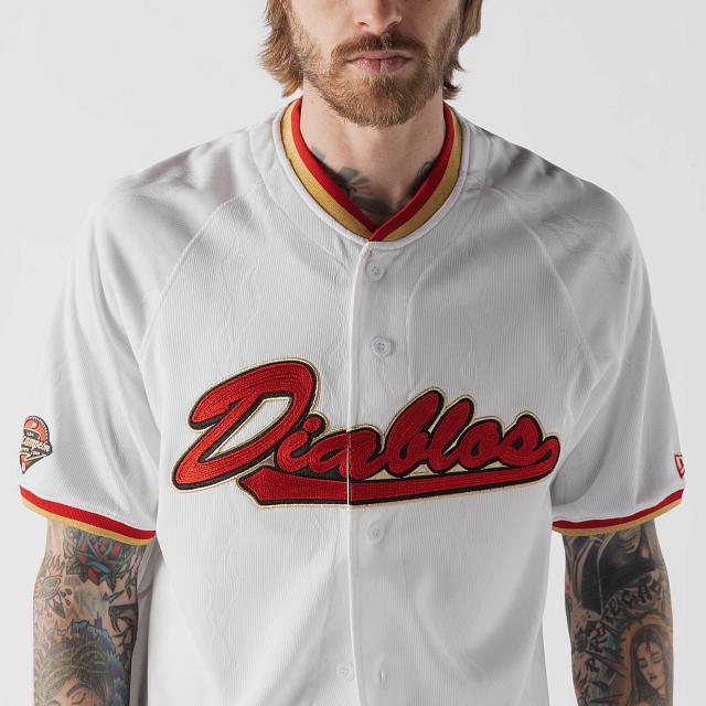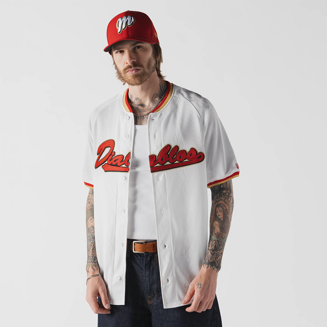 Apoya a tu equipo en esta temporada 2026 con el Jersey New Era de Diablos Rojos del México de local de corte regular que ofrece un ajuste cómodo y clásico, fiel a la talla. Presenta un diseño de flamas en tela jacquard, Diablos bordado en la parte frontal, la frase Vivir y Morir Jugando Béisbol en el interior del cuello, el logo de la LMB y Bicampeones en la parte de atrás, parche de Bicampeón en la manga derecha y el flag de New Era bordado en la manga izquierda. Cómpralo ya.