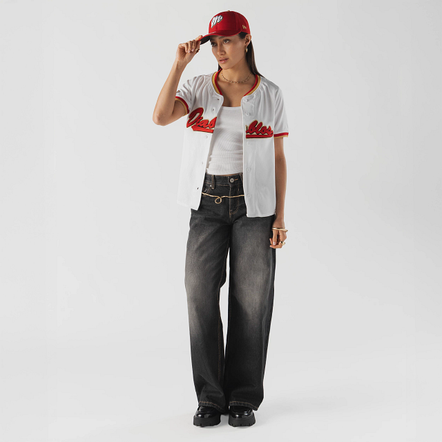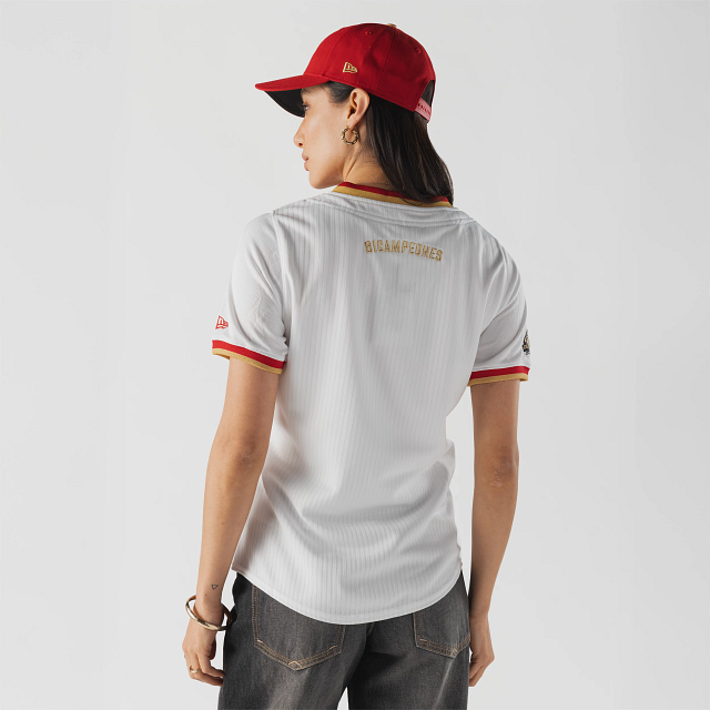 Apoya a tu equipo en esta temporada 2026 con el Jersey New Era para Mujer de Diablos Rojos del México de local de corte regular que ofrece un ajuste cómodo y clásico, fiel a la talla. Presenta un diseño de flamas en tela jacquard, Diablos bordado en la parte frontal, la frase Vivir y Morir Jugando Béisbol en el interior del cuello, Bicampeones en la parte de atrás, parche de Bicampeón en la manga derecha y el flag de New Era bordado en la manga izquierda. Cómpralo ya.