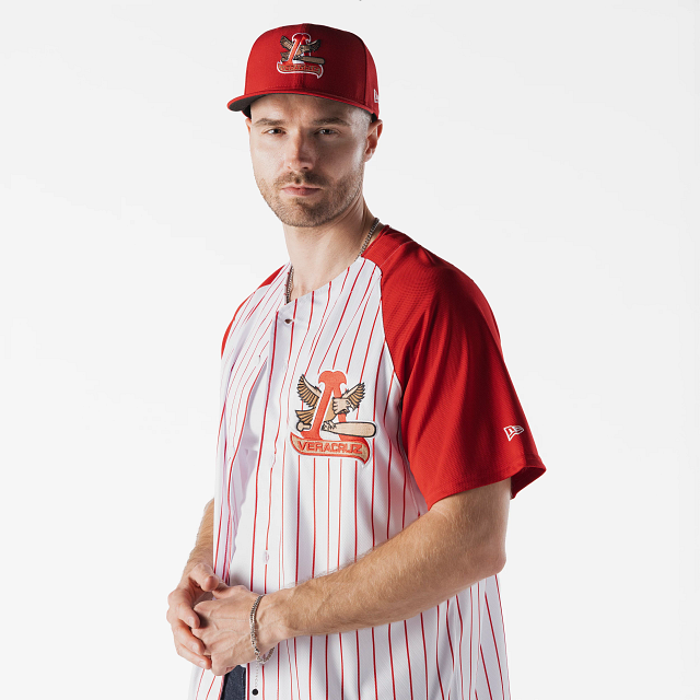 Apoya a tu equipo favorito de Liga Mexicana de Softbol con este Jersey New Era de El Águila de Veracruz de la temporada 2026 que presenta un diseño pinstripe con el logotipo de El Águila bordado en la parte frontal izquierda, el logo de la LMS en la parte de atrás del cuello y el flag de New Era bordado en la manga izquierda. Cómpralo ya.