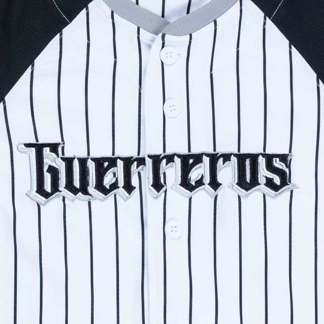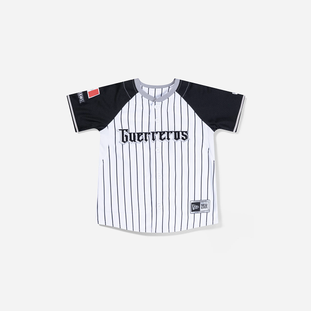 Este Jersey New Era para Niña o Niño de Guerreros de Oaxaca de la colección LMB Jerseys presenta un diseño a rayas con el nombre de los Guerreros bordado en la parte frontal, la bandera de México y el nombre Oaxaca en la manga derecha, y el flag de New Era bordado en la manga izquierda. Apoya a tu equipo y cómpralo ya.