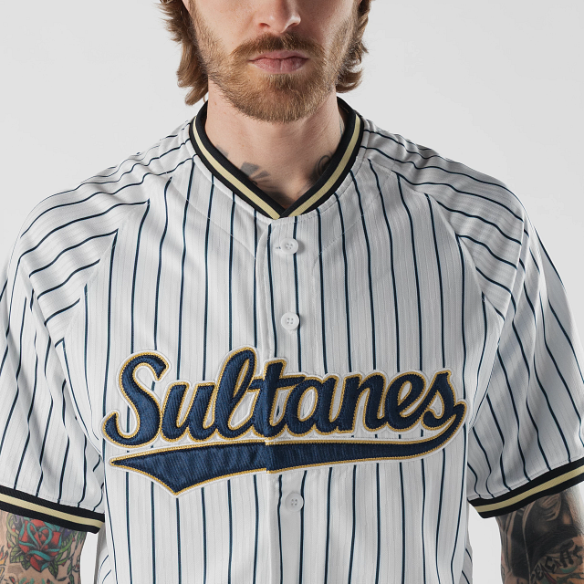 Apoya a tu equipo en esta temporada 2026 con el Jersey New Era de Sultanes de Monterrey de local de corte regular que ofrece un ajuste cómodo y clásico, fiel a la talla. Presenta un diseño pinstripe en tela jacquard, Sultanes bordado en la parte frontal, la frase Orgullo Sultán en el interior del cuello, el logo de la LMB en la parte de atrás y el flag de New Era bordado en la manga izquierda. Cómpralo ya.