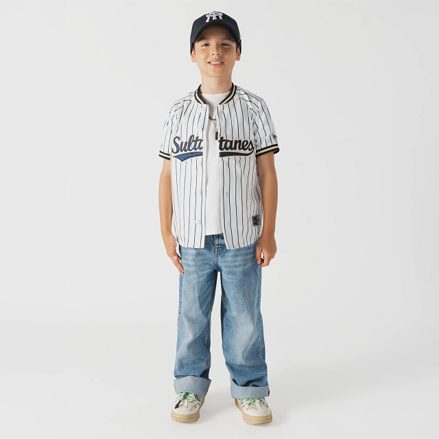 Apoya a tu equipo en esta temporada 2026 con el Jersey New Era para Niña o Niño de Sultanes de Monterrey de local de corte regular que ofrece un ajuste cómodo y clásico, fiel a la talla. Presenta un diseño pinstripe en tela jacquard, Sultanes bordado en la parte frontal, la frase Orgullo Sultán en el interior del cuello y el flag de New Era bordado en la manga izquierda. Cómpralo ya.