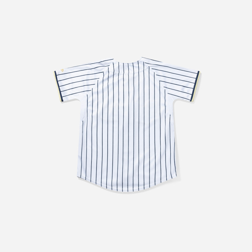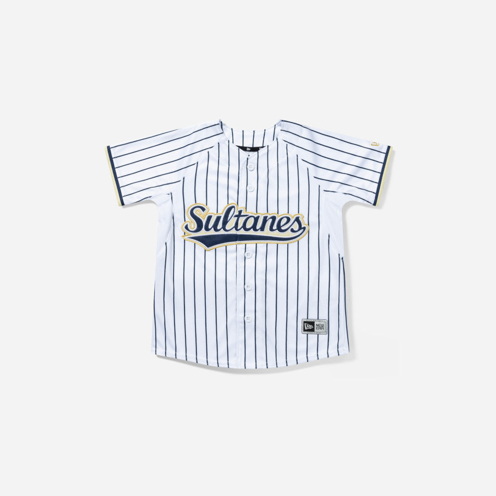 Este Jersey New Era para Niña o Niño de Sultanes de Monterrey de la colección LMB Jerseys presenta un diseño a rayas con el nombre de los Sultanes bordado en la parte frontal y el flag de New Era bordado en la manga izquierda. Apoya a tu equipo y cómpralo ya.