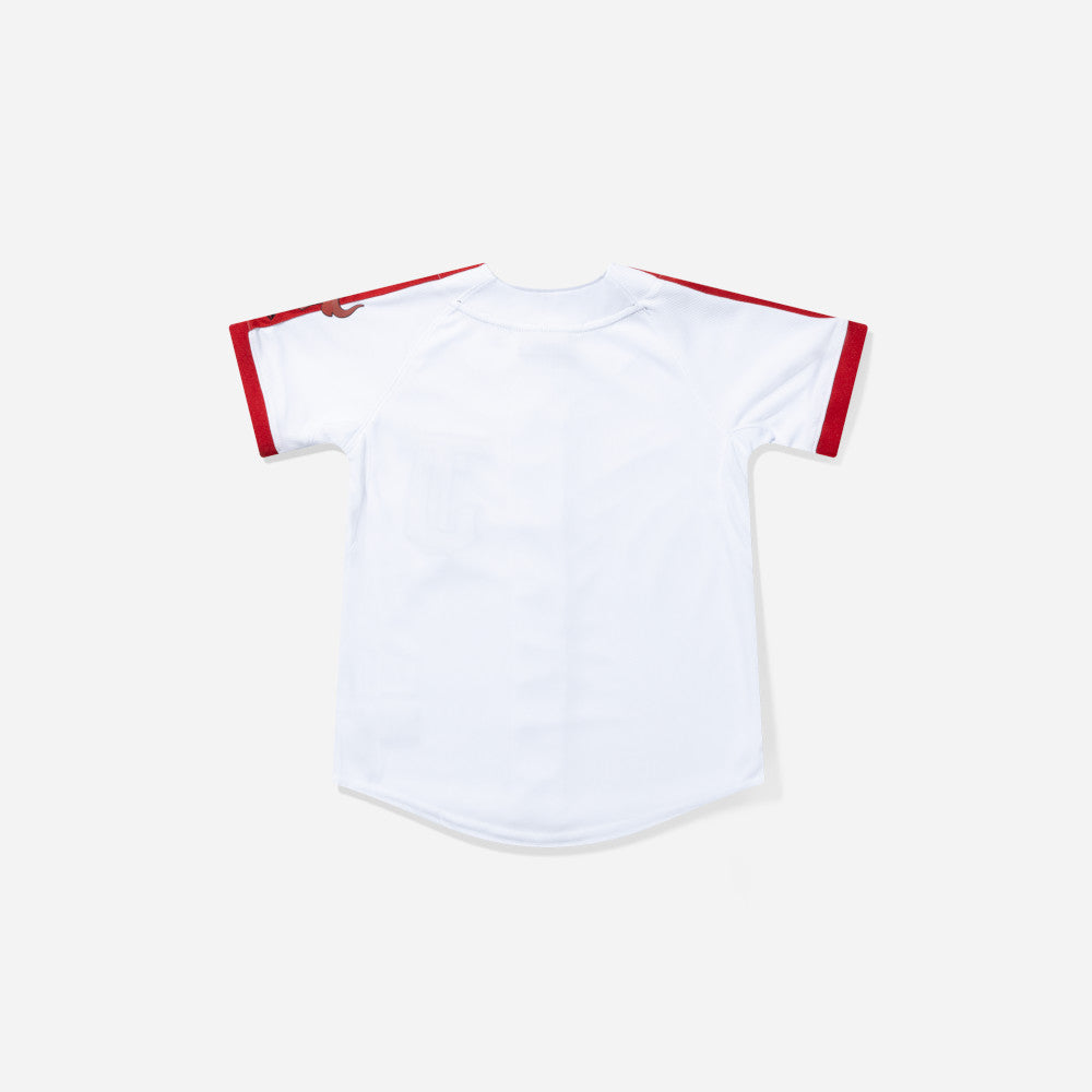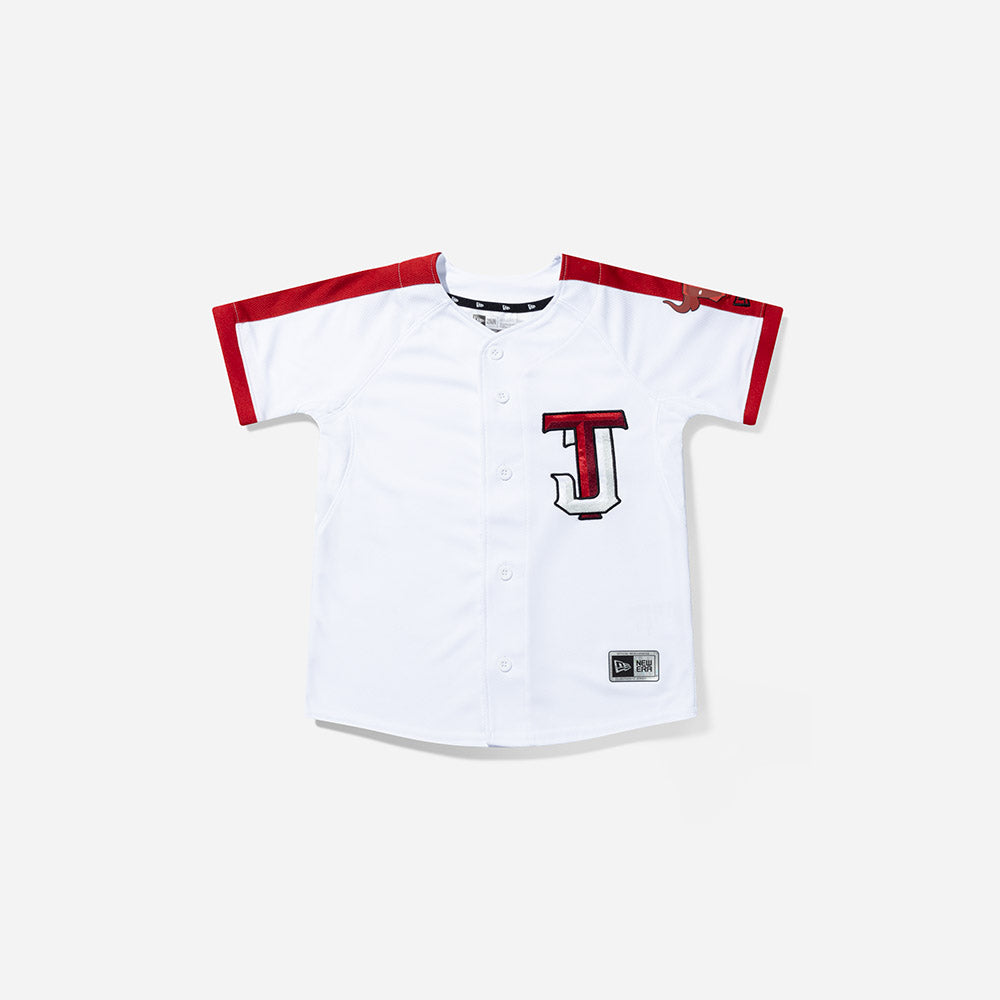 Este Jersey New Era para Niña o Niño de Toros de Tijuana de la colección LMB Jerseys presenta el logotipo de los Toros bordado en la parte frontal izquierda, un toro y el flag de New Era bordado en la manga izquierda. Apoya a tu equipo y cómpralo ya.