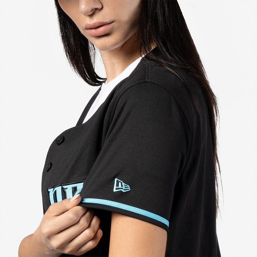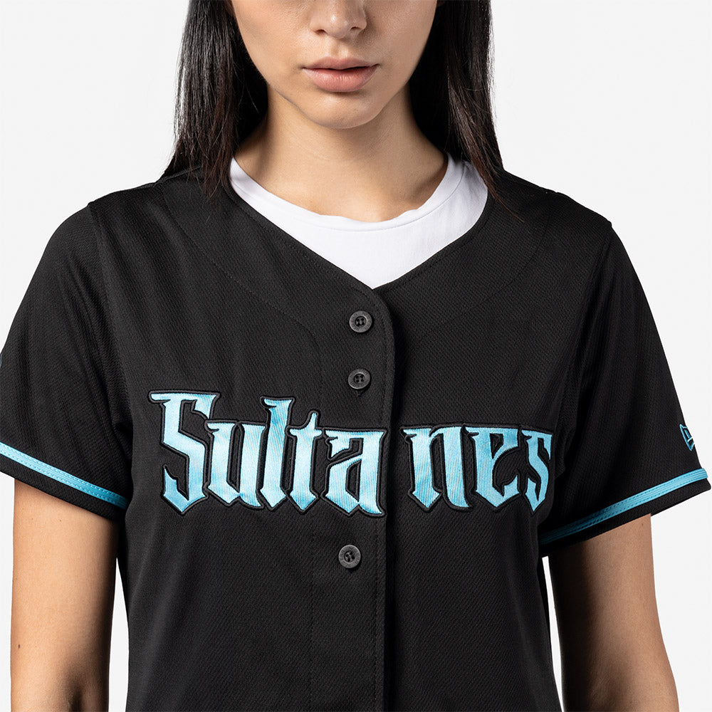 Este Jersey New Era para Mujer de Sultanes de Monterrey de la colección LAMP Jerseys 2024 presenta un diseño con el nombre de los Sultanes en la parte frontal, el logo del equipo en la manga derecha y el flag de New Era bordado en la manga izquierda. Apoya a tu equipo y cómprala ya.